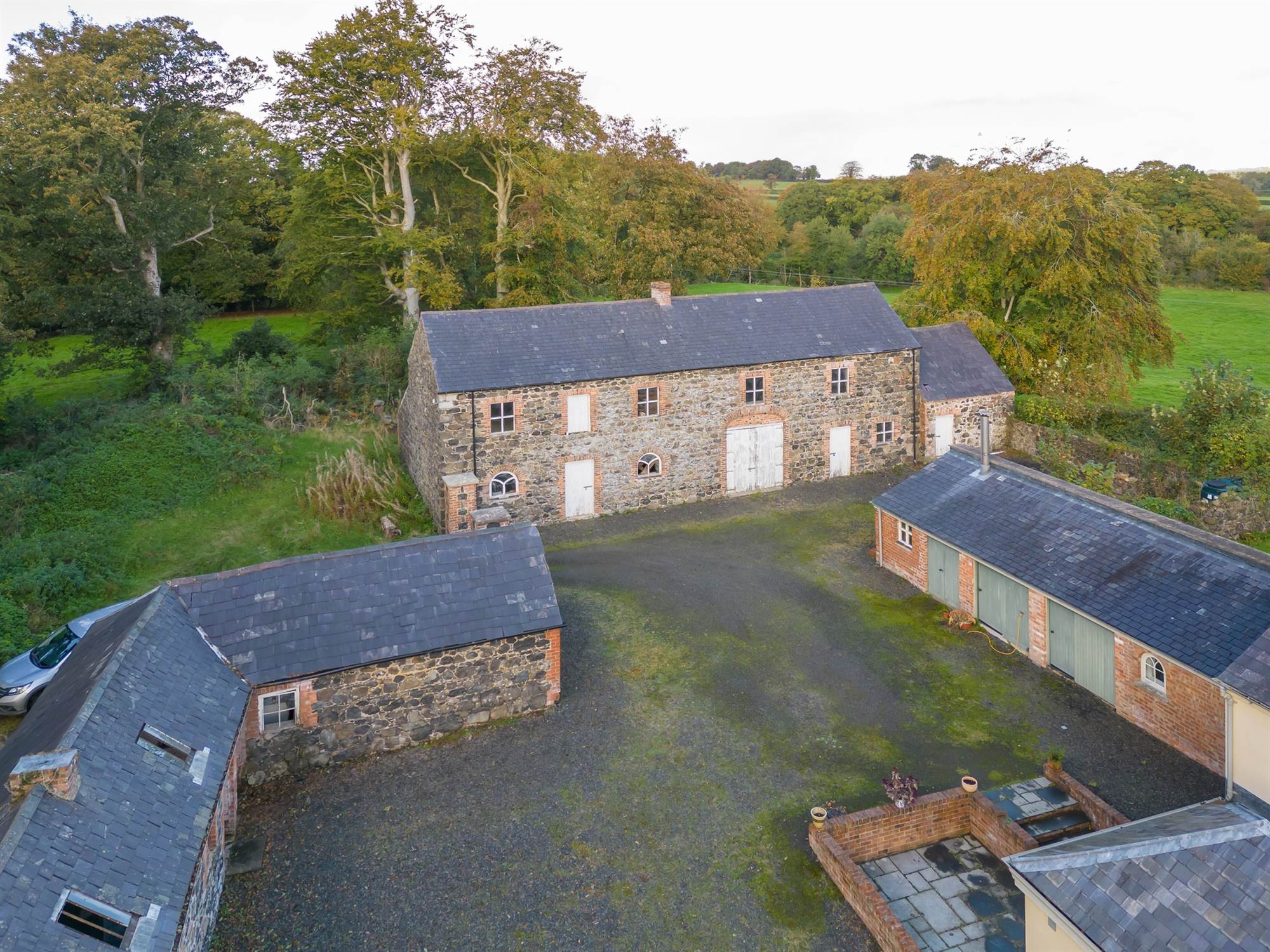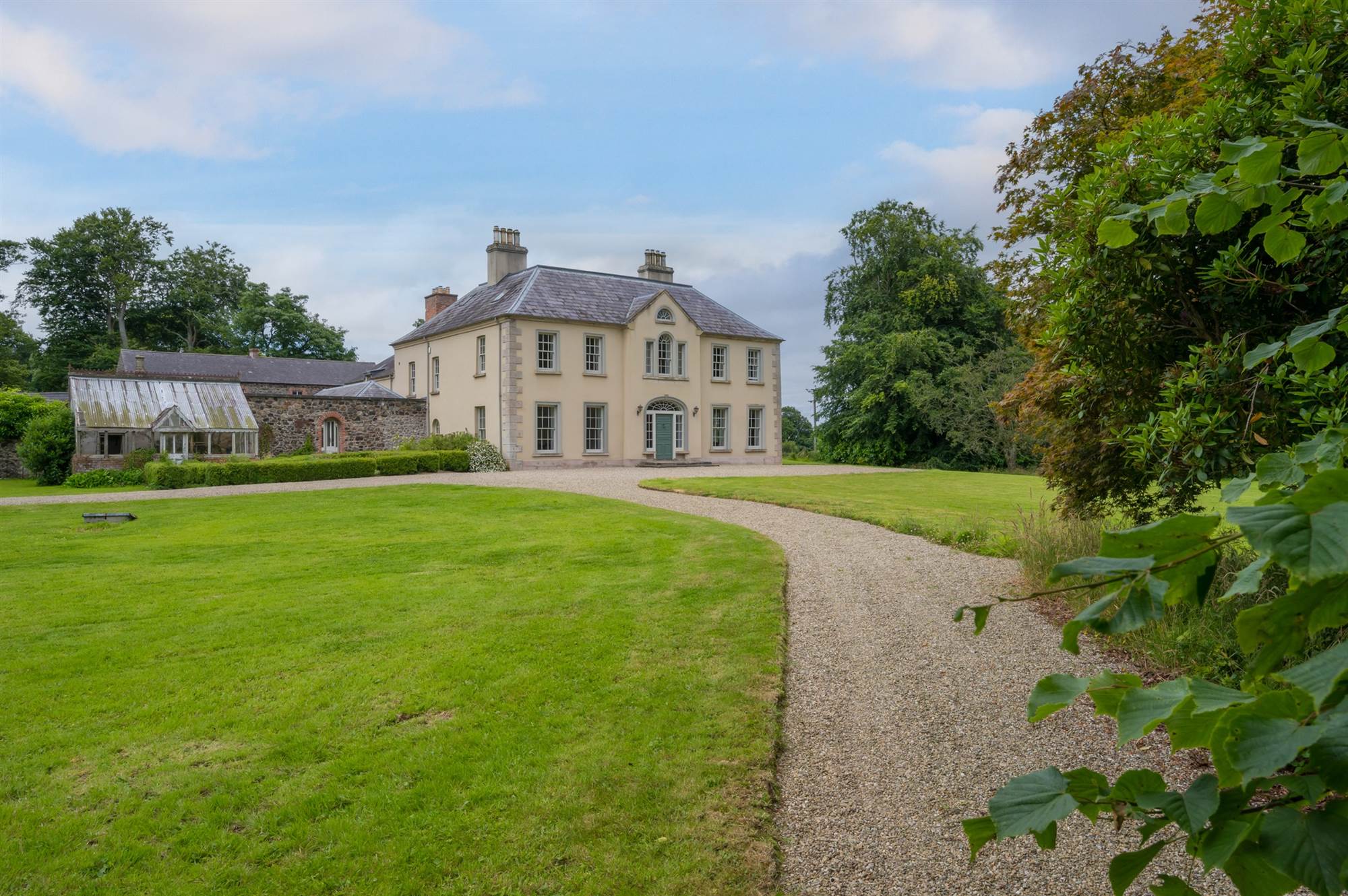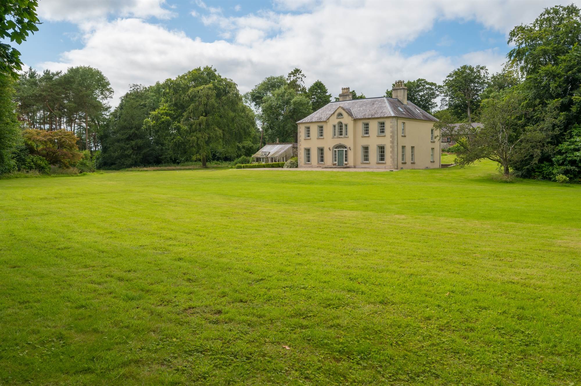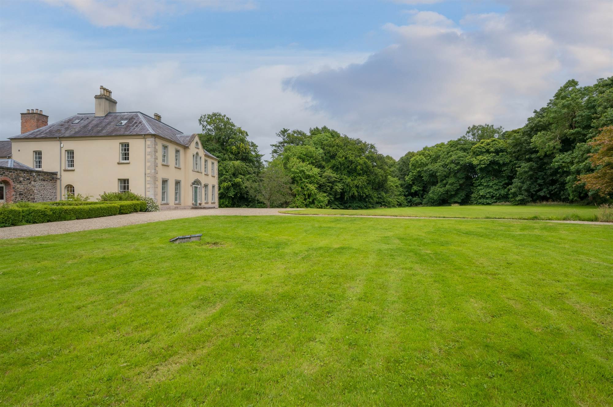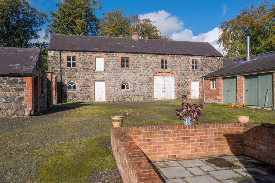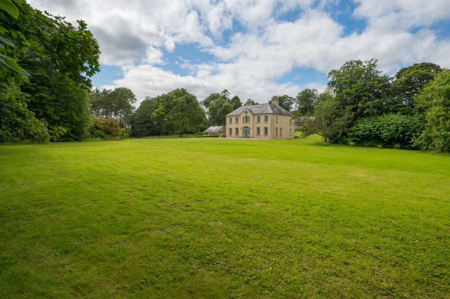 Outside the gardens are laid in lawn with a wide variety of specimen trees. There is a courtyard to the rear with a range of outbuildings to include a two storey coach house and an array of outhouses. The tranquil setting in 35 acres of land include the opportunity for walks to explore through the woods alongside the River Agivey with all its natural beauty and wildlife.