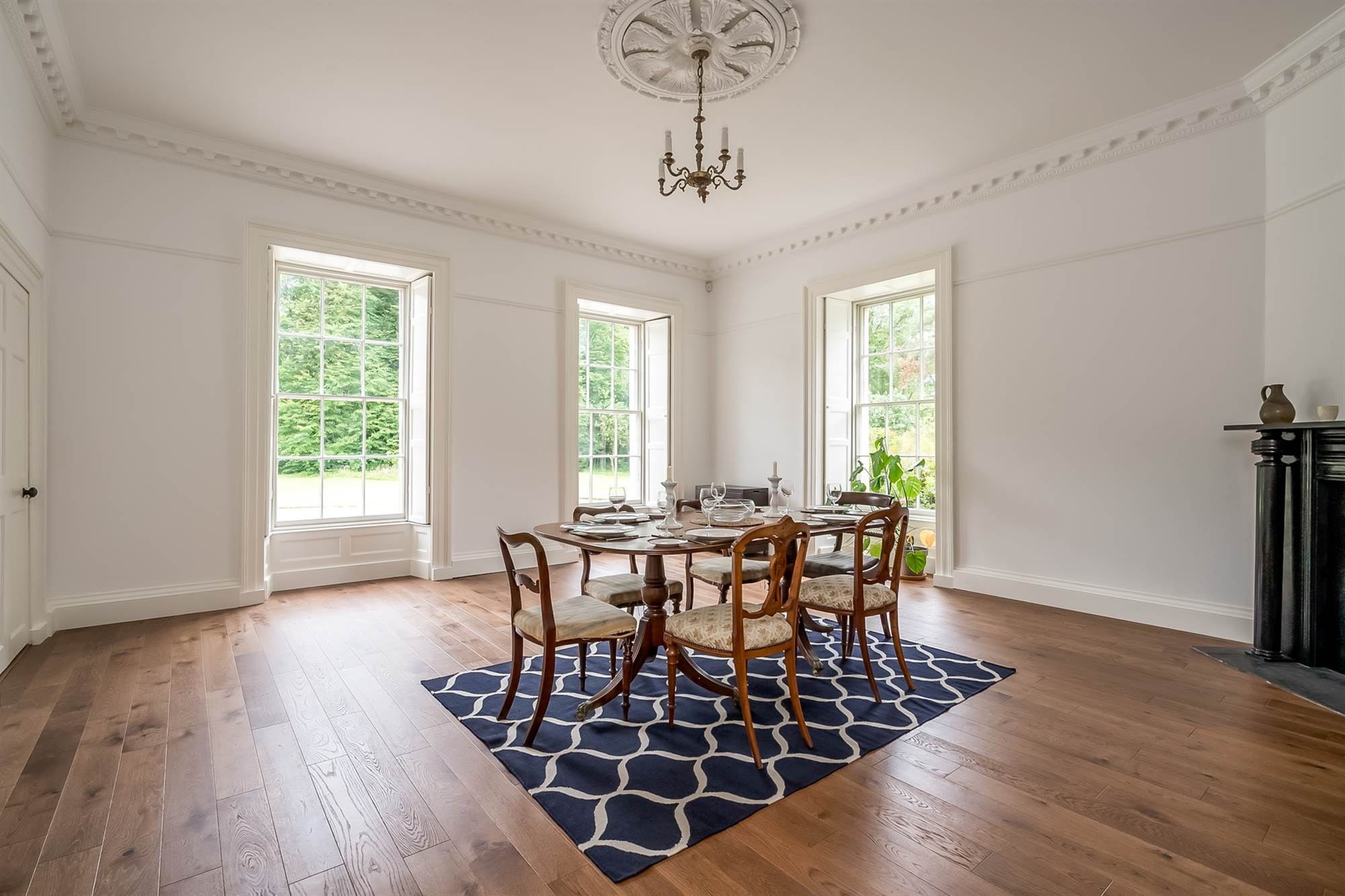 The house was extensively restored and renovated in 2010 to include reroofing, rewiring and a high pressurized water system. The accommodation extends to circa 8000 sq ft with five reception rooms, eight bedrooms, two with ensuite bathrooms and two further bathrooms and a shower room.