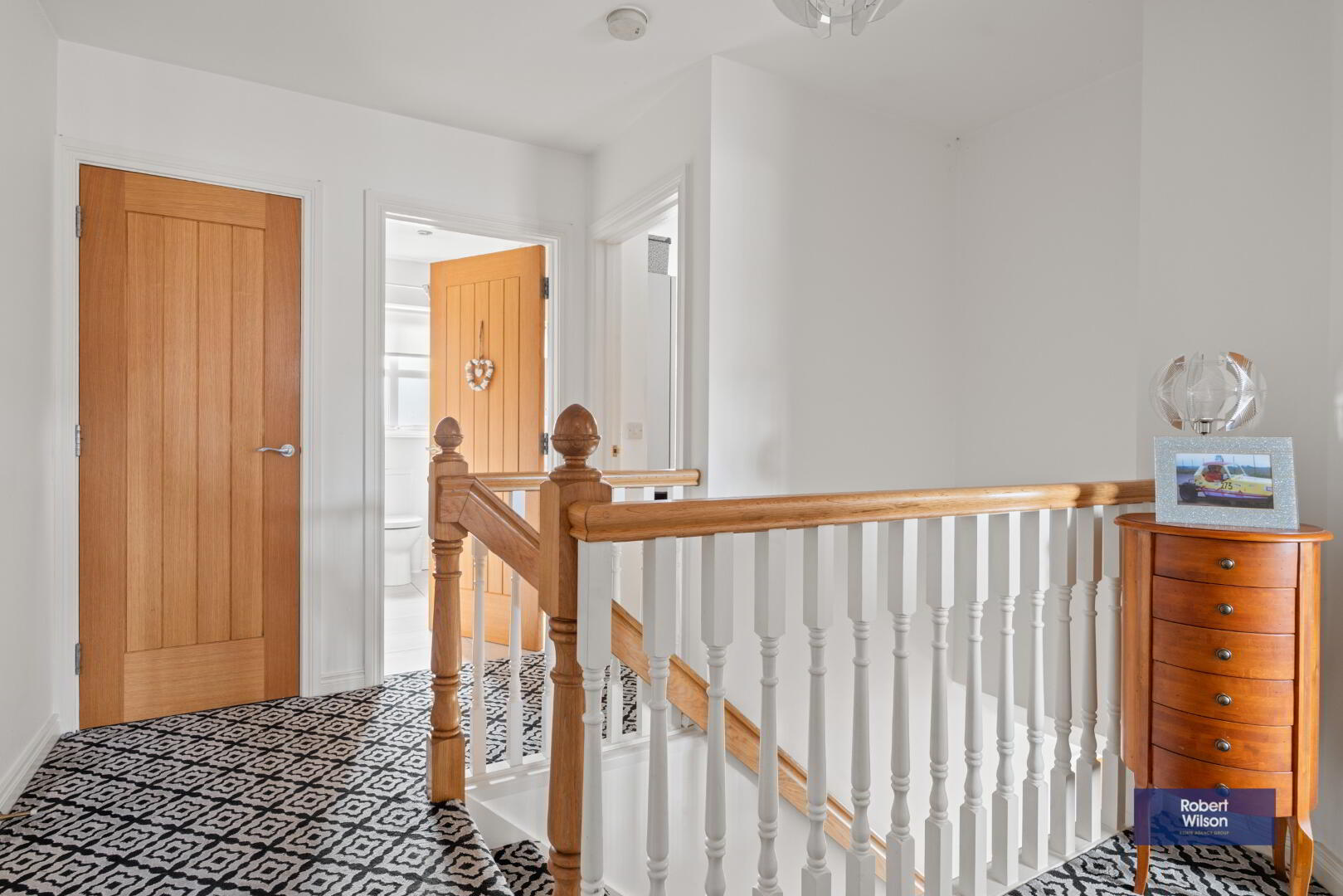 Upstairs, the main bedroom benefits from a sleek en-suite shower room, complemented by two further well-proportioned bedrooms and a contemporary family bathroom.