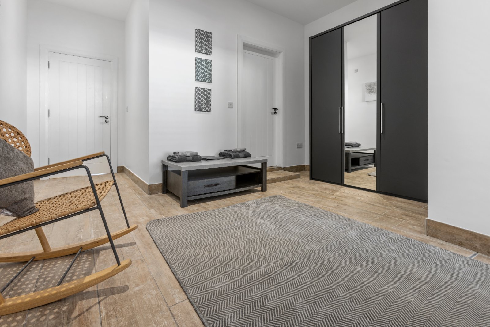 The ground level includes four luxury units with living space, kitchen area and en-suite facilities, with a gym and laundry for communal usage, and covers roughly 1900 square feet. Accessed separately but also benefiting from an integral doorway between the four units, the first floor consists of a 1700 square foot apartment which opens onto the rooftop terrace. Perfect as high end living space for the owner occupier or corporate client, the first floor could also be adapted to provide an additional two units with en-suites.