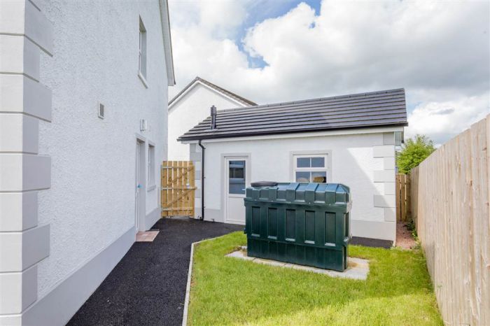 Generous tarmac yard to front of property for parking. Enclosed Garden in lawn to rear with superb privacy and outlook over green fields. Outside lights. Outside tap.