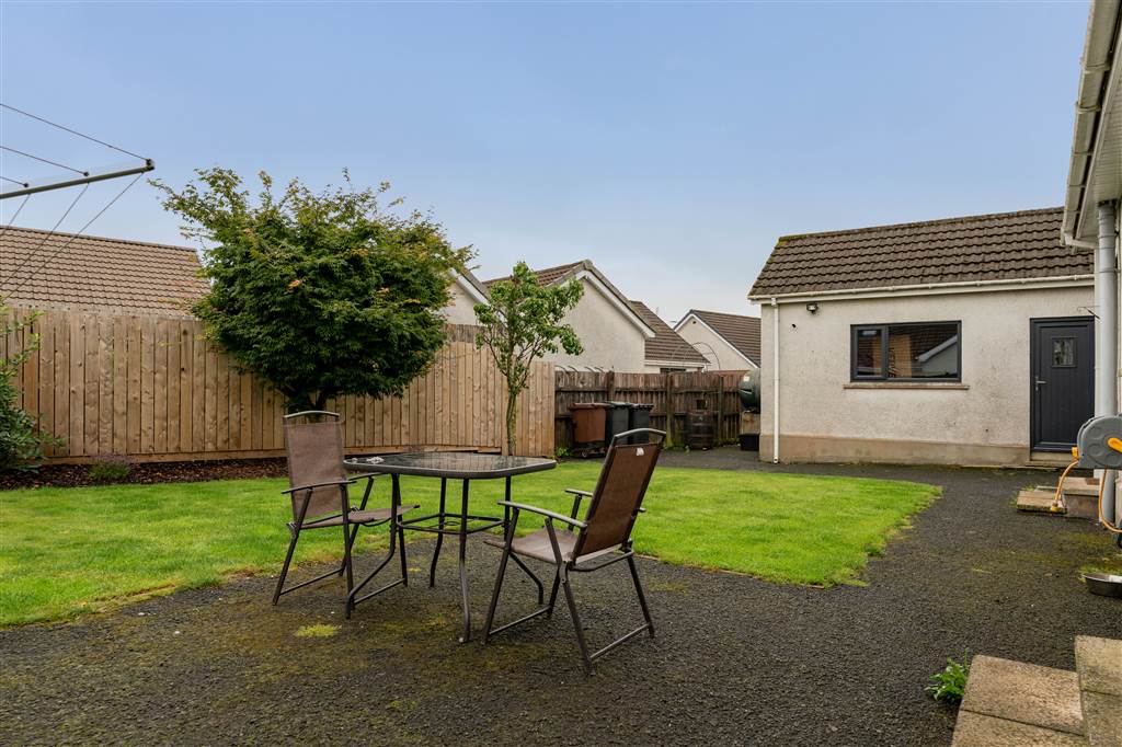 With tarmac drive at side of property for off-street parking. Garden in lawn to front of property with path to front door, decorative pebbled area and planted shrubs. Enclosed garden in lawn to rear bounded by fencing and gate. Tarmac area to rear ideal for BBQ season with double doors to kitchen/dining room. Outside tap. Outside lights.