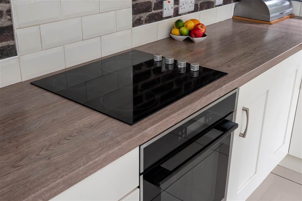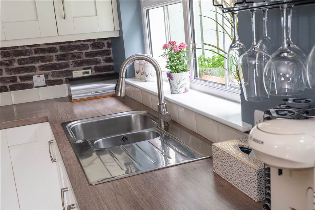 With a range of eye and low-level fitted units, 1 1/4 bowl stainless-steel sink unit and drainer with stainless-steel mixer tap. Integrated four ring electric hob and oven with stainless-steel extractor fan over. Integrated fridge-freezer. Integrated dishwasher. Plumbed for washing machine. Cutlery drawer. Saucepan drawers. Splash back tiling. Spacious area for dining. PVC double doors to rear. Tiled flooring.