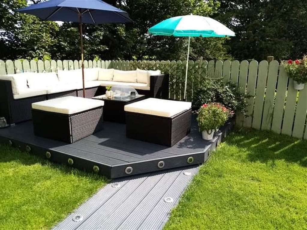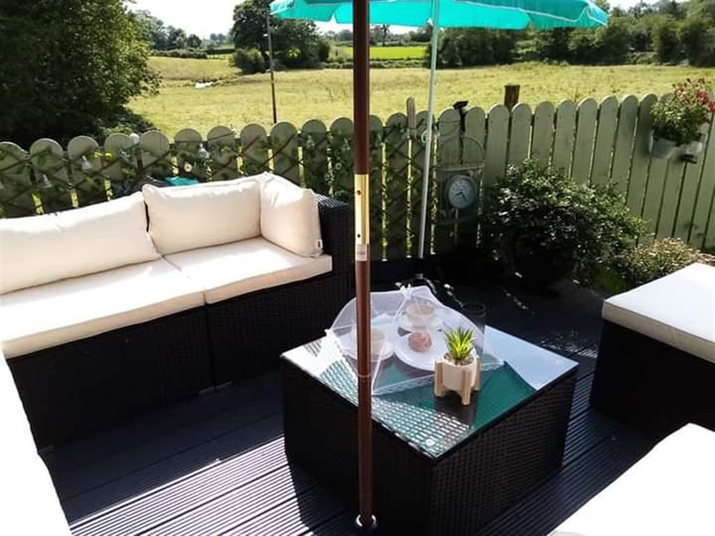 With tarmac drive at front of property for parking. Paved path leading to front door. Garden in lawn at side and rear. Elevated decking area. Paved area ideal for BBQ season with PVC double doors to kitchen/dining room. Garden bounded by wooden fencing. Ohme EV charger. Excellent privacy overlooking green fields.