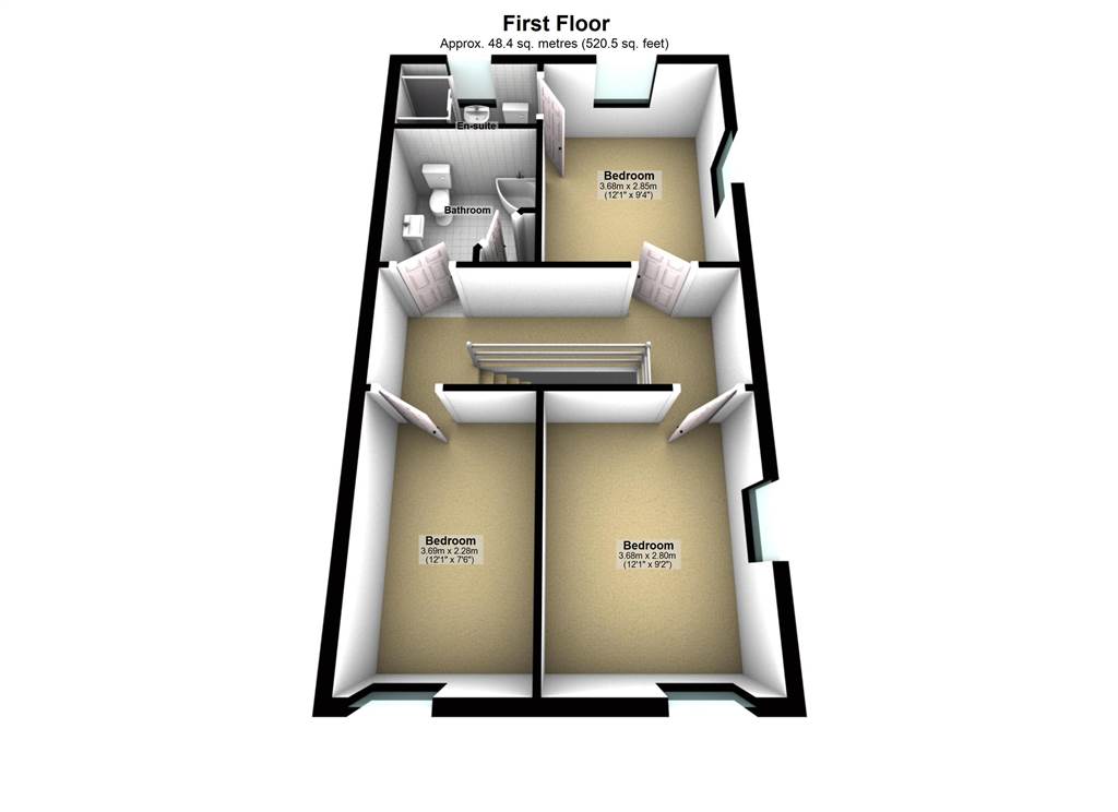 BEDROOM (3): 12' 1" X 7' 6" (3.69m X 2.28m)