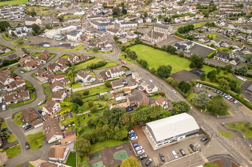 With stoned driveway at front, side and rear of property for parking. Gardens in lawn to side and rear of property. Mature trees and hedging. Outbuildings and storage sheds. Outside lights.