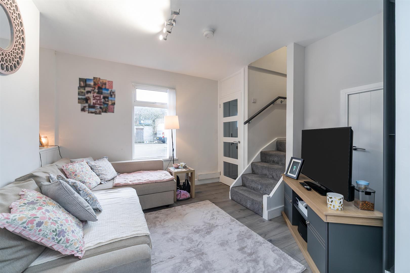 A well-presented mid terrace home located off the Albertbridge Road. The property is entered via an entrance porch leading into a welcoming living room, finished with laminate strip wood flooring and benefiting from useful under-stairs storage. The living room flows seamlessly into a modern, well-equipped kitchen fitted with a range of high and low level units, oven and ceramic four-ring hob, along with plumbing for a washing machine.