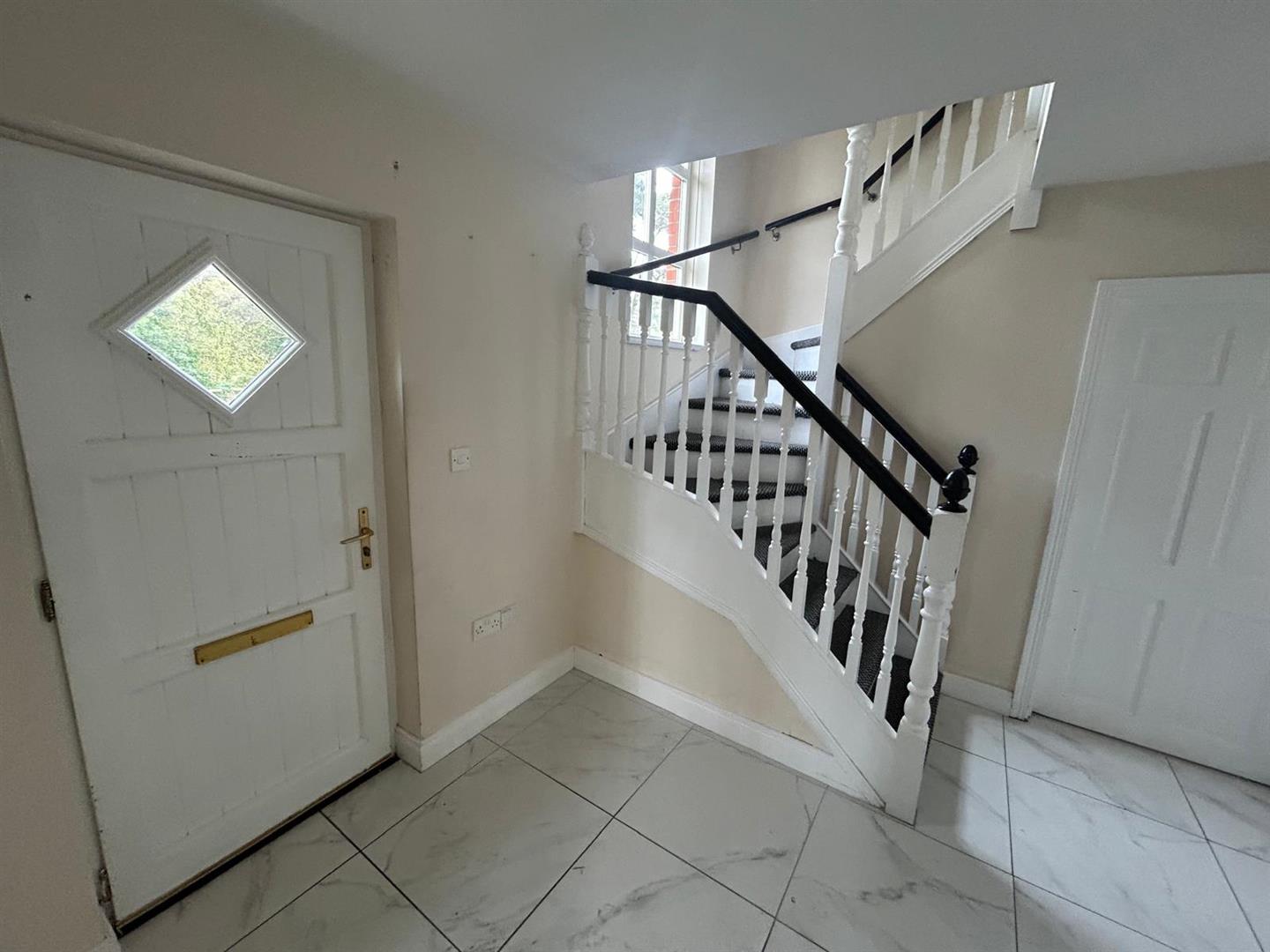 Cloaks cupboard off plumbed for washing machine, tiled floor.
