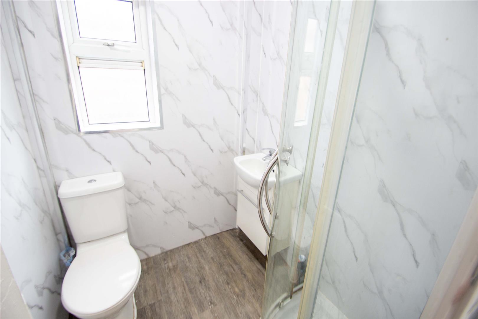 Shower Cubicle, wash hand basin, low flush wc.