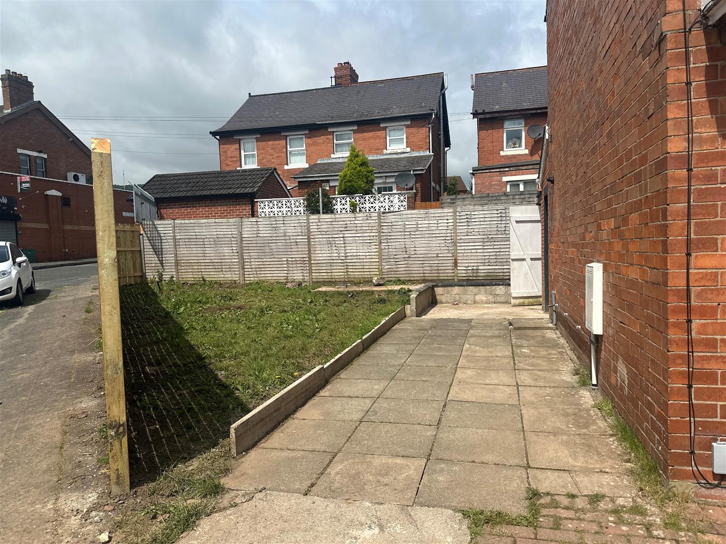 An extended red brick end terrace home.