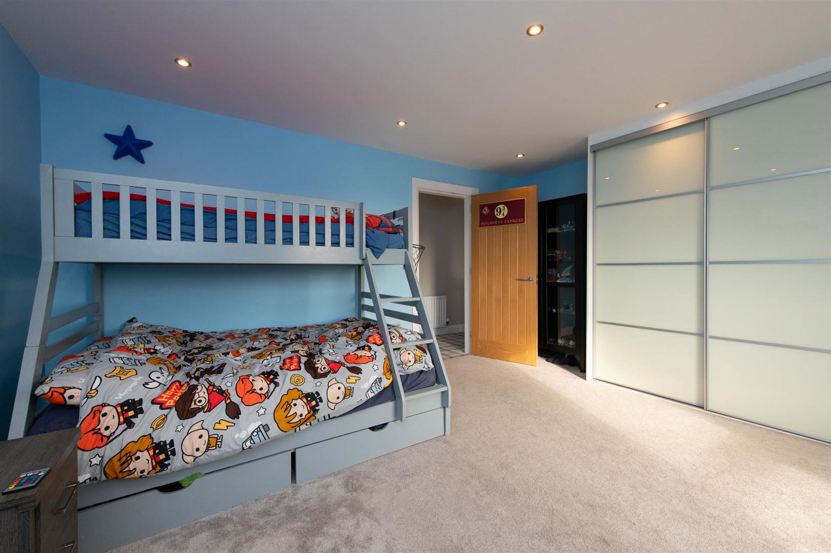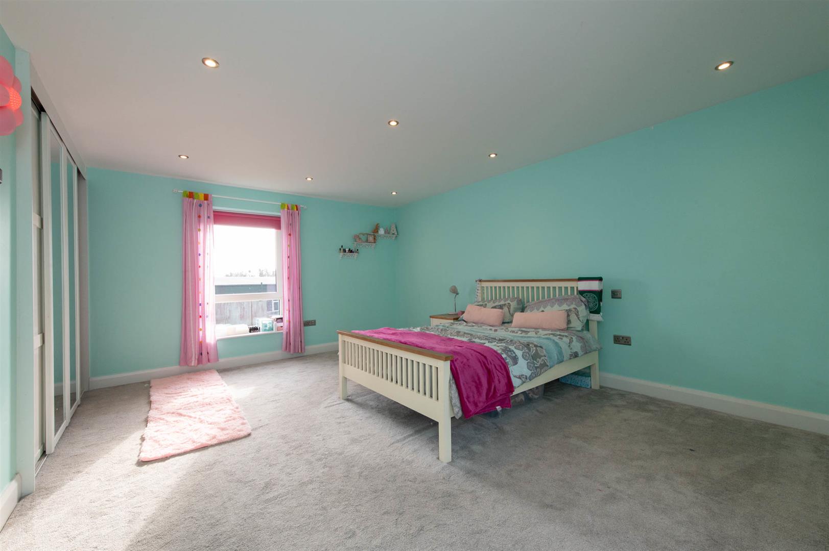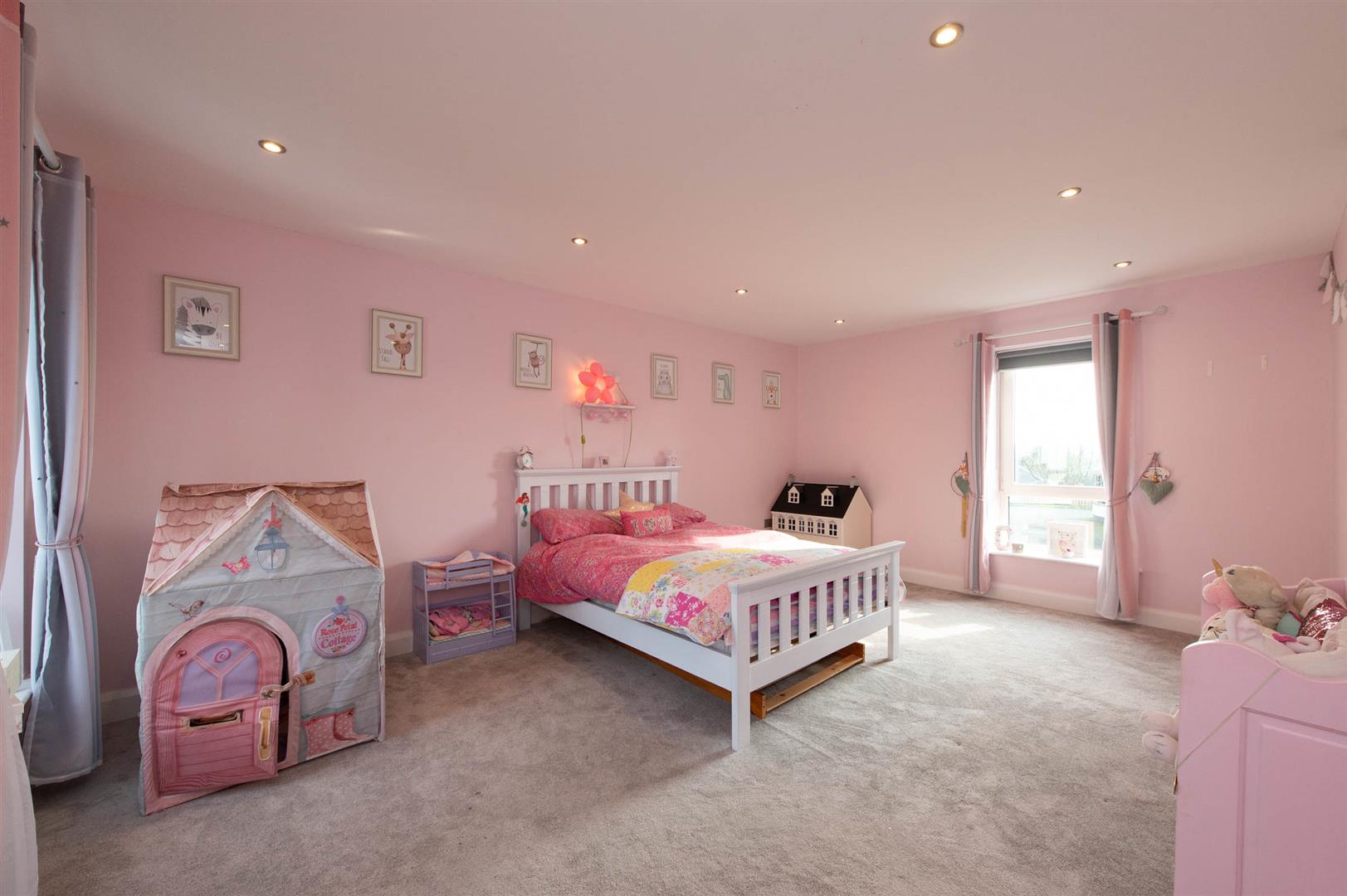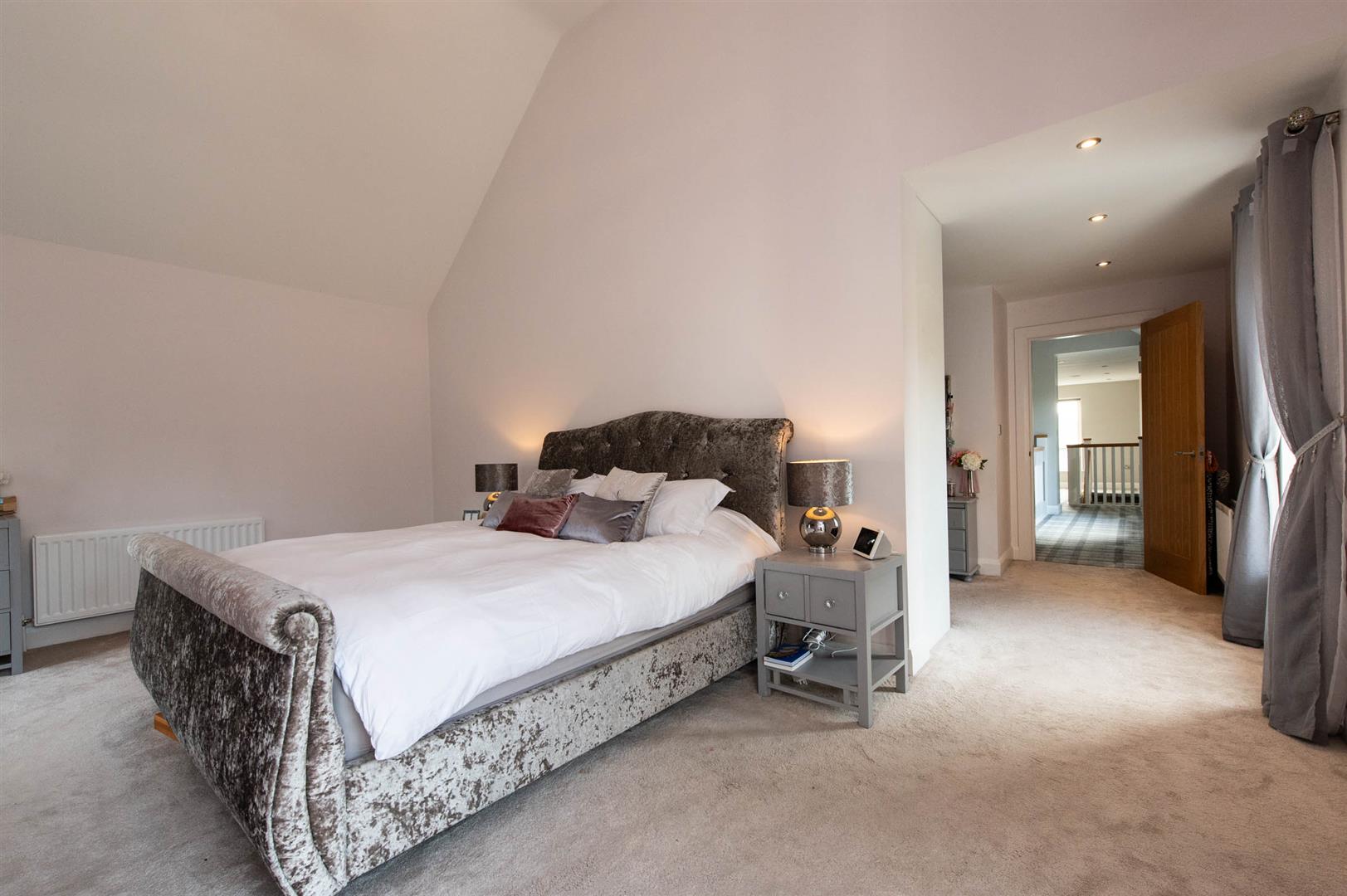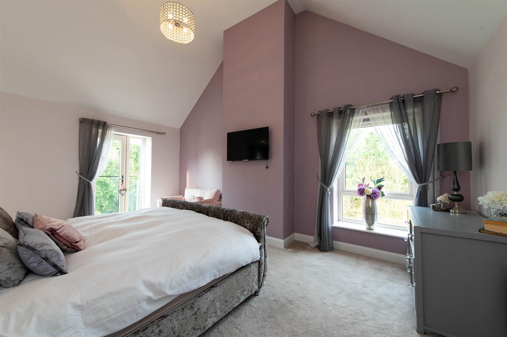 The property comprises bright spacious hallway with featured gallery landing and wall window overlooking the garden, to the right of the hall you access the kitchen, dining living area with featured corner wall windows, bifold doors and inset stove. The kitchen is finished to a high quality with quartz worktops, integrated appliances including hob with built in extractor fan, Galley island with seating, and additional prep sink. There is a recess for an American fridge freezer. To the left of the hallway you have access to the Lounge/Family room with access to the rear garden, featured inset stove and decorative built in shelving. playroom, spacious closet and rear hall leading to the shower room, utility room, integral garage and exterior door. The first floor offers four sizeable bedrooms, with the primary suite offering a dressing area and ensuite and featured pitched ceiling and balcony door overlooking the garden. Tiled family bathroom with freestanding bath and walk-in shower enclosure.