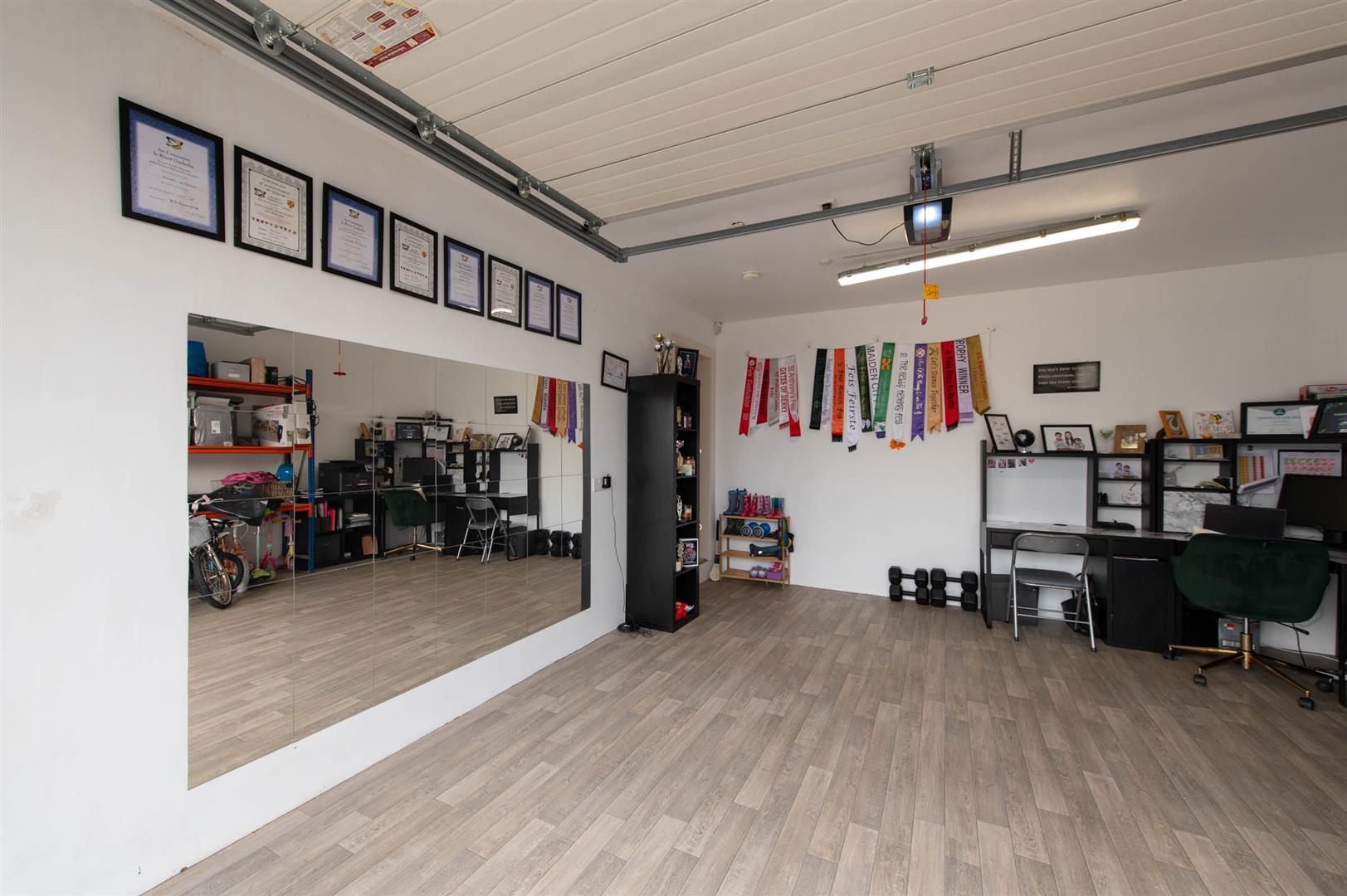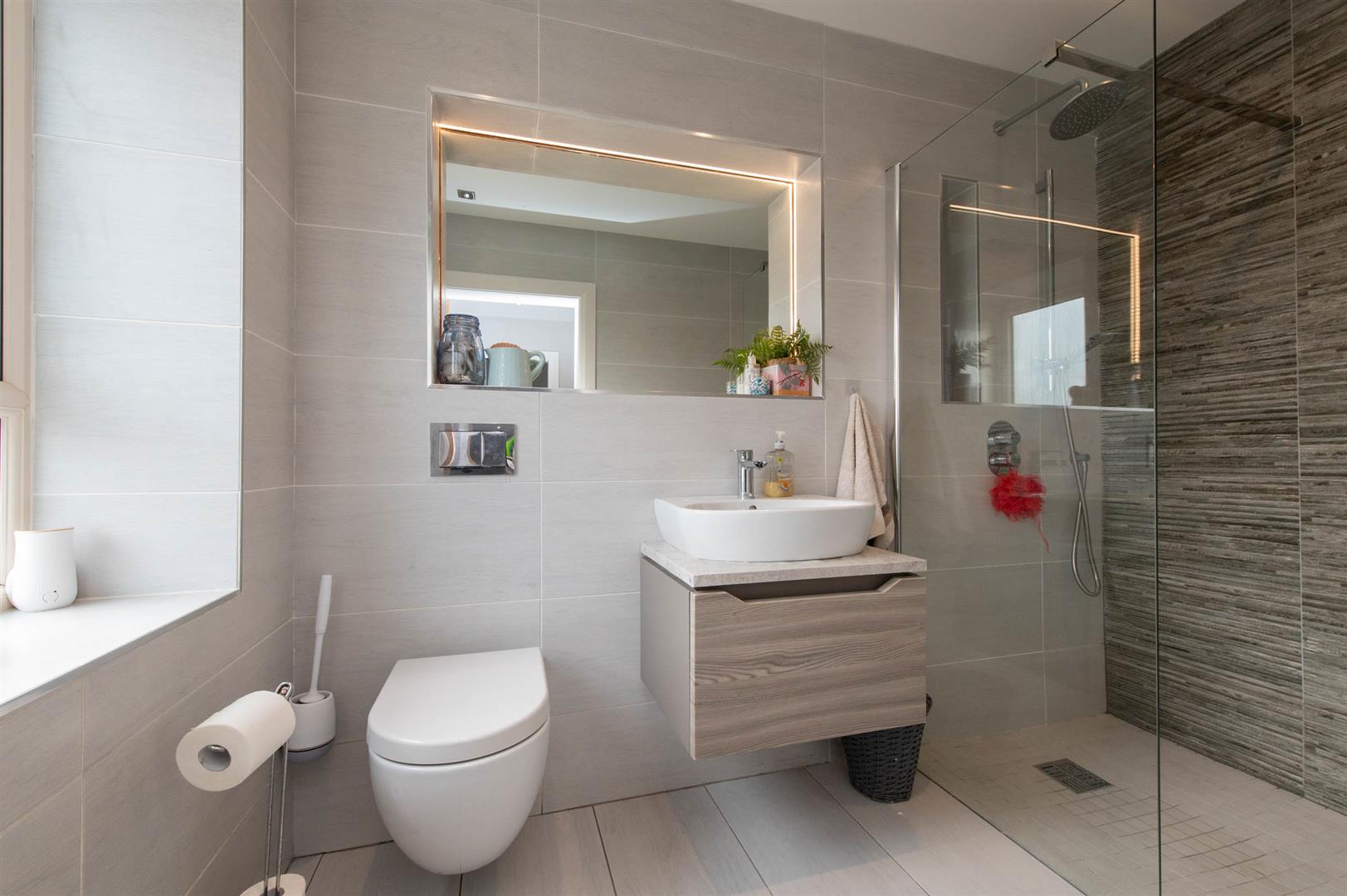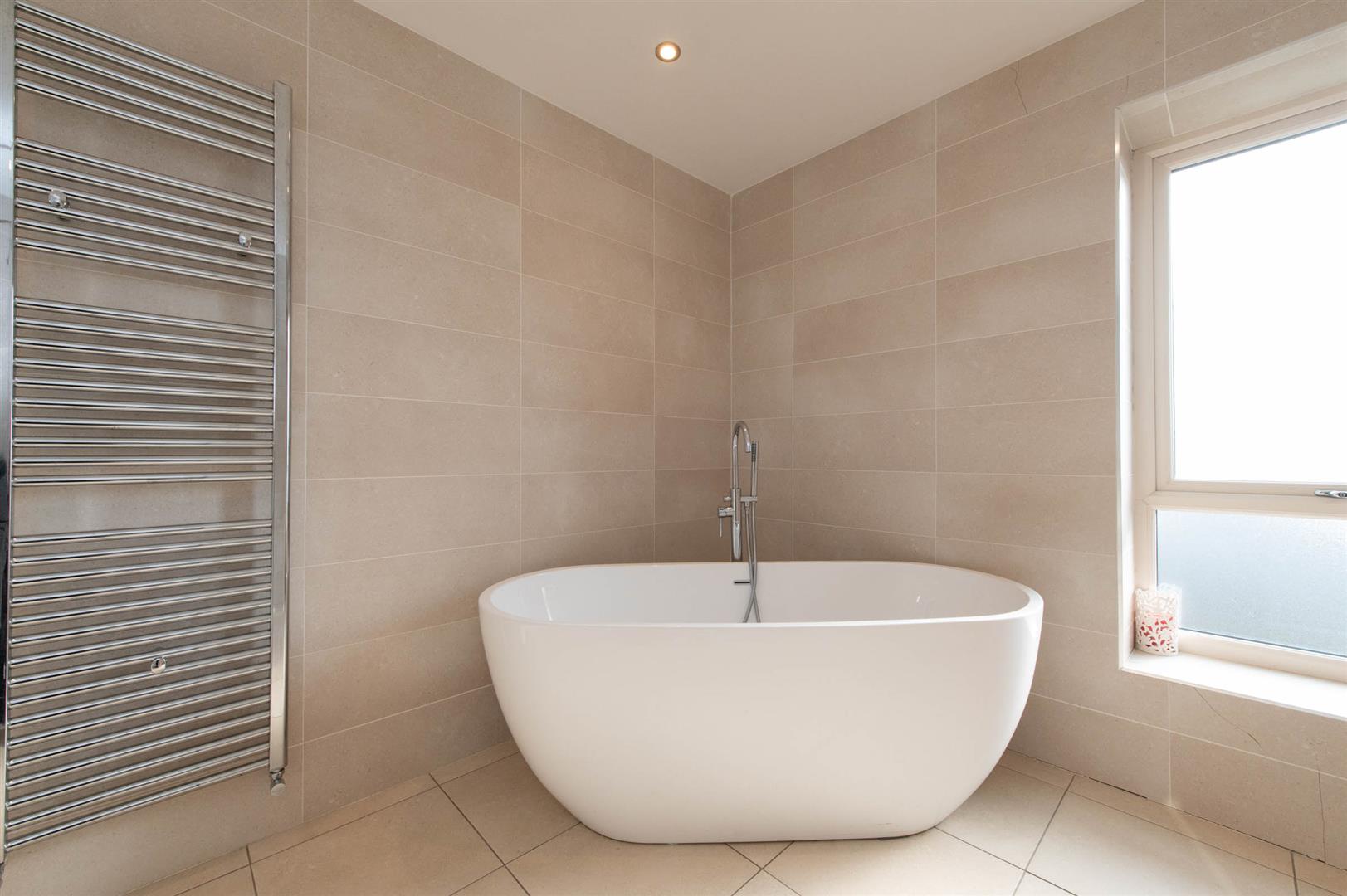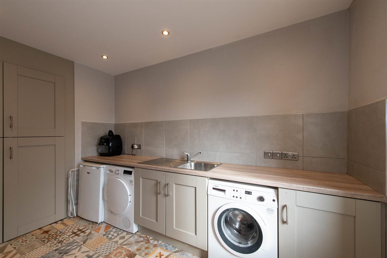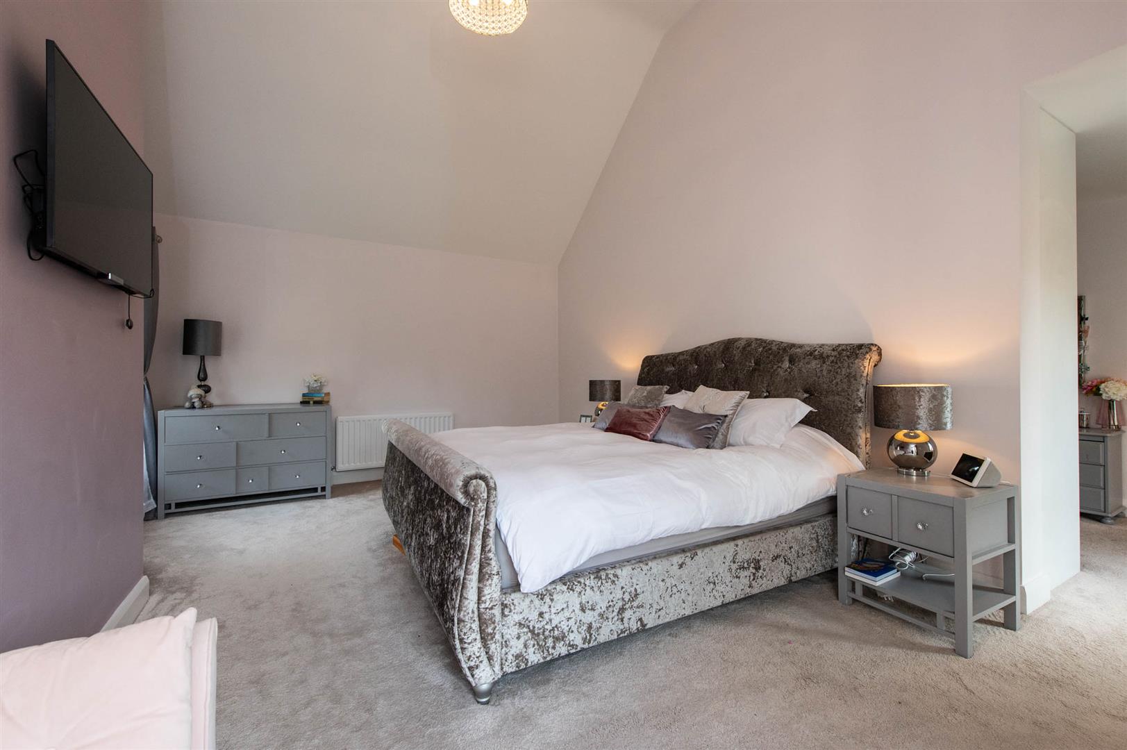 The property comprises bright spacious hallway with featured gallery landing and wall window overlooking the garden, to the right of the hall you access the kitchen, dining living area with featured corner wall windows, bifold doors and inset stove. The kitchen is finished to a high quality with quartz worktops, integrated appliances including hob with built in extractor fan, Galley island with seating, and additional prep sink. There is a recess for an American fridge freezer. To the left of the hallway you have access to the Lounge/Family room with access to the rear garden, featured inset stove and decorative built in shelving. playroom, spacious closet and rear hall leading to the shower room, utility room, integral garage and exterior door. The first floor offers four sizeable bedrooms, with the primary suite offering a dressing area and ensuite and featured pitched ceiling and balcony door overlooking the garden. Tiled family bathroom with freestanding bath and walk-in shower enclosure.