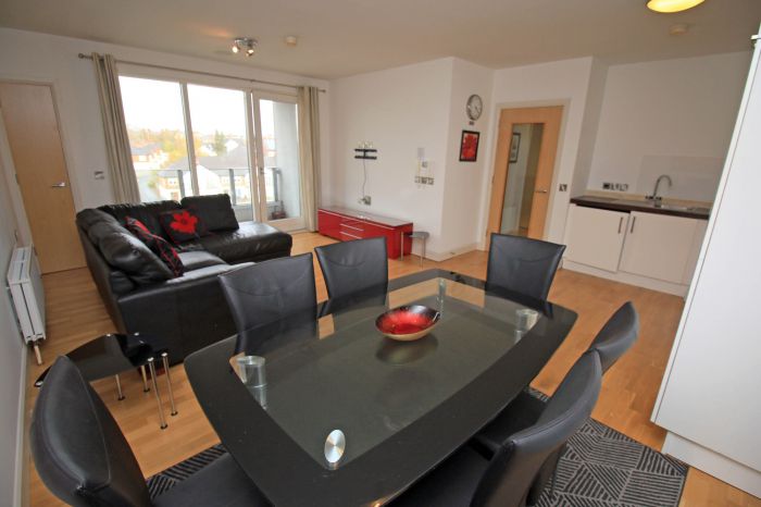 This modern penthouse apartment is situated on the fourth floor and is the largest type in this block. It is bright, airy and spacious with a good quality of finish. Importantly for privacy, this apartment has no neighbouring units adjoining it. Both double bedrooms are a good size and the bathrooms are also more spacious than similar apartments. The property has been stylishly furnished and the decor is light and nuetral. This building is well managed and has the advantage of secure car parking, CCTV and a part-time janitor. Property rates and management charges are included in the rent. The property is located just a few moments from Stranmillis with quick access to the city centre and M1 motorway .