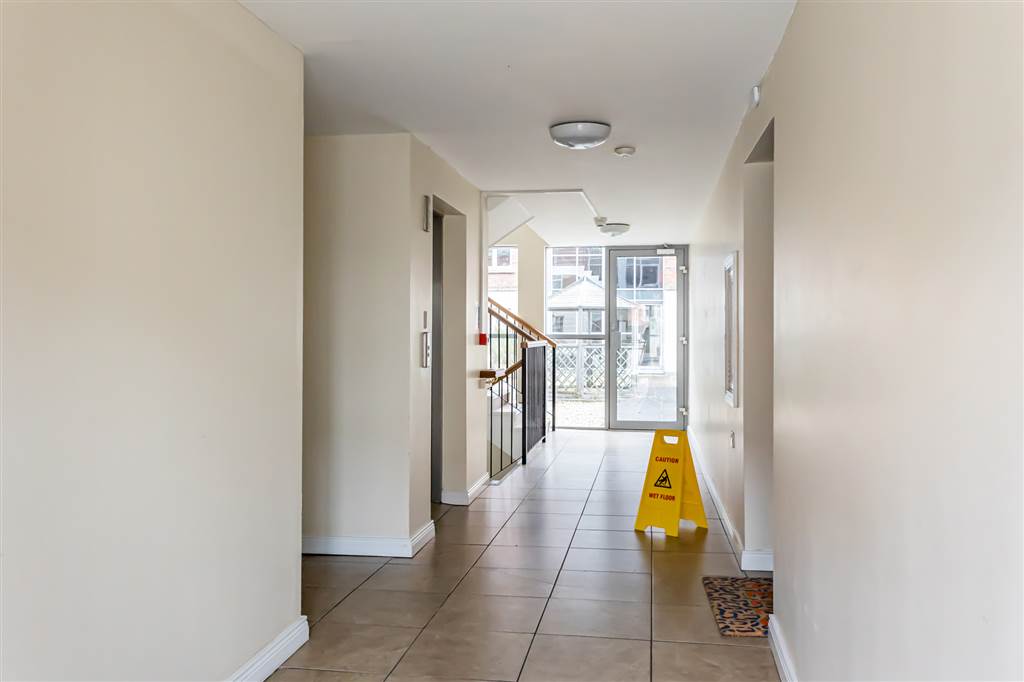 Enclosed entrance hall with intercom and two large storage areas. Laminate flooring.