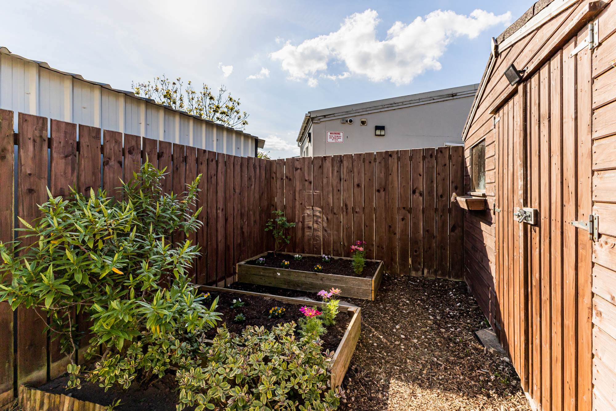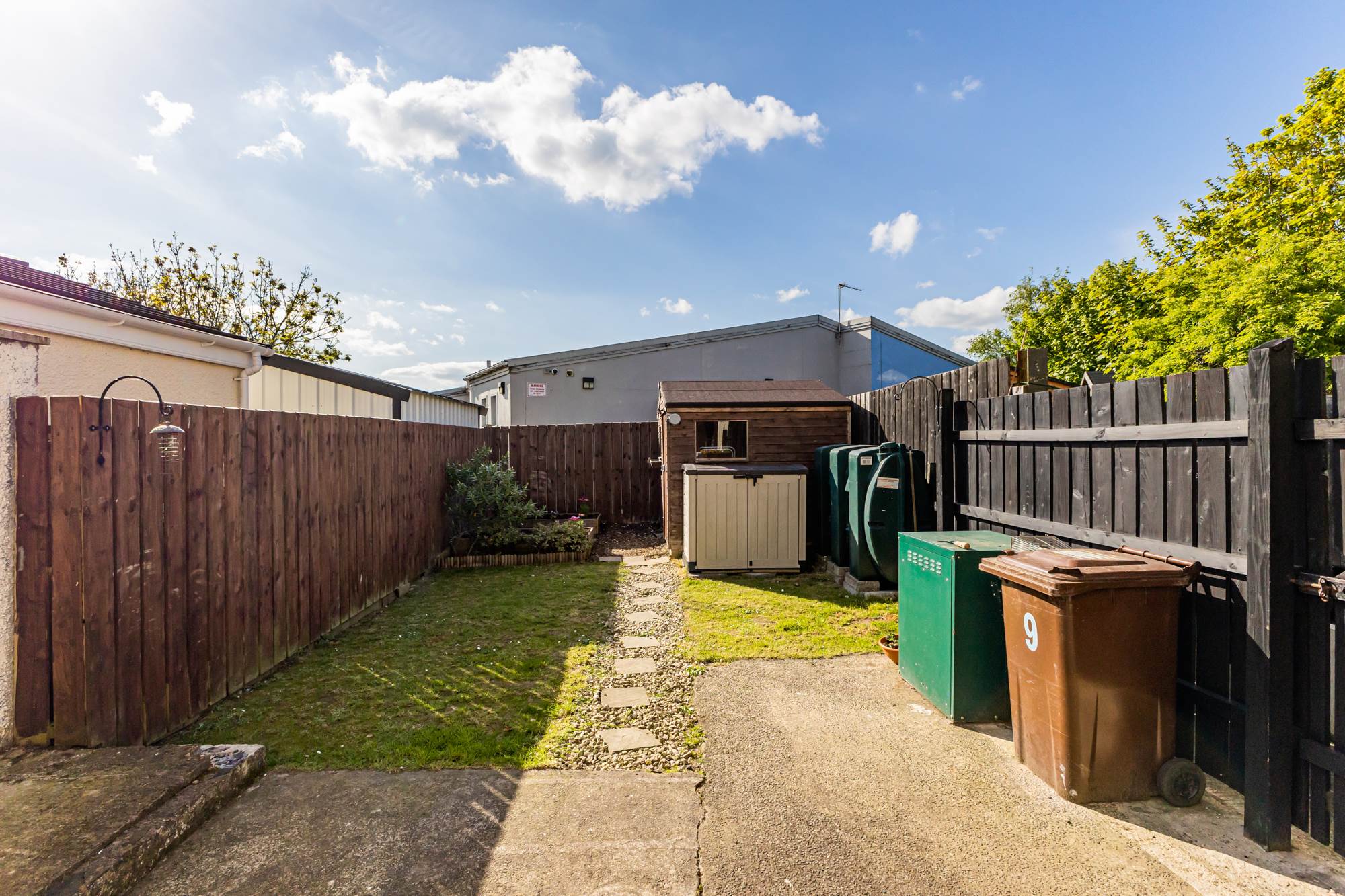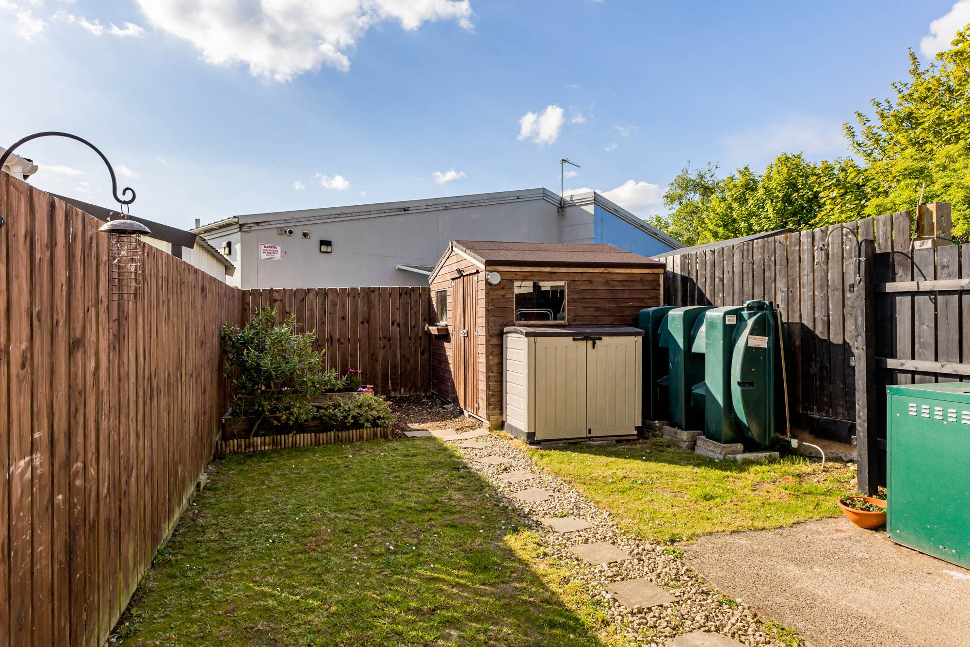 Enclosed rear garden with patio, and boiler house, uPVC oil tank.
