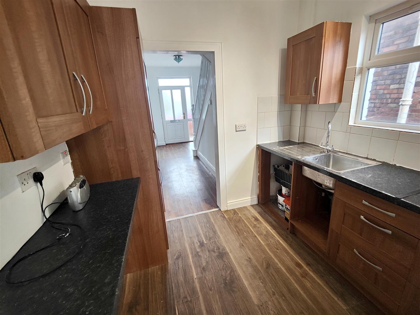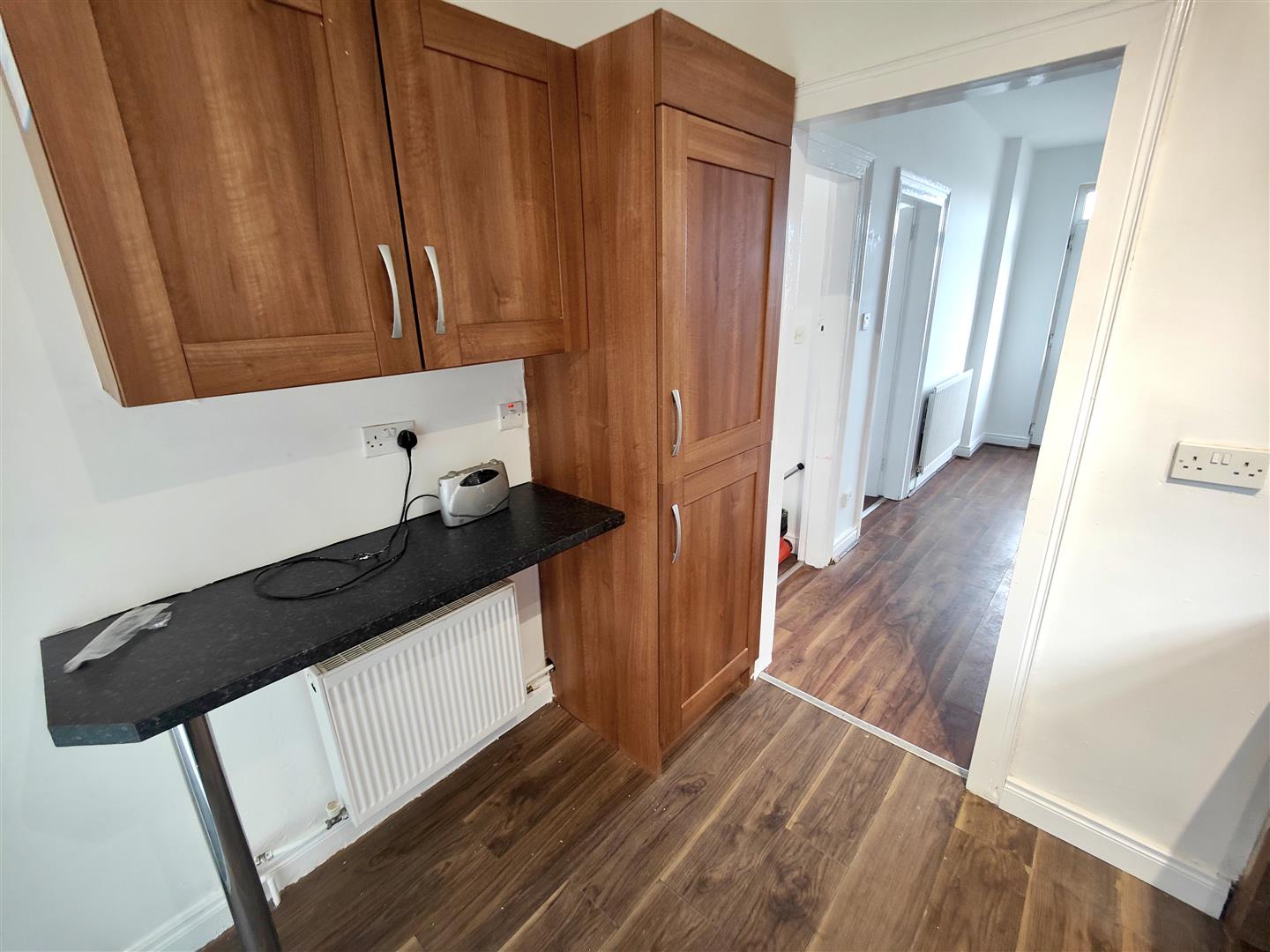 Upvc double glazed entrance door, wood laminate floor, panelled radiator, under stairs storage, concealed gas boiler.