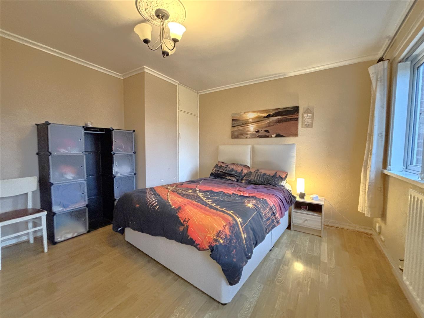 Built-in storage, wood laminate floor, panelled radiator.