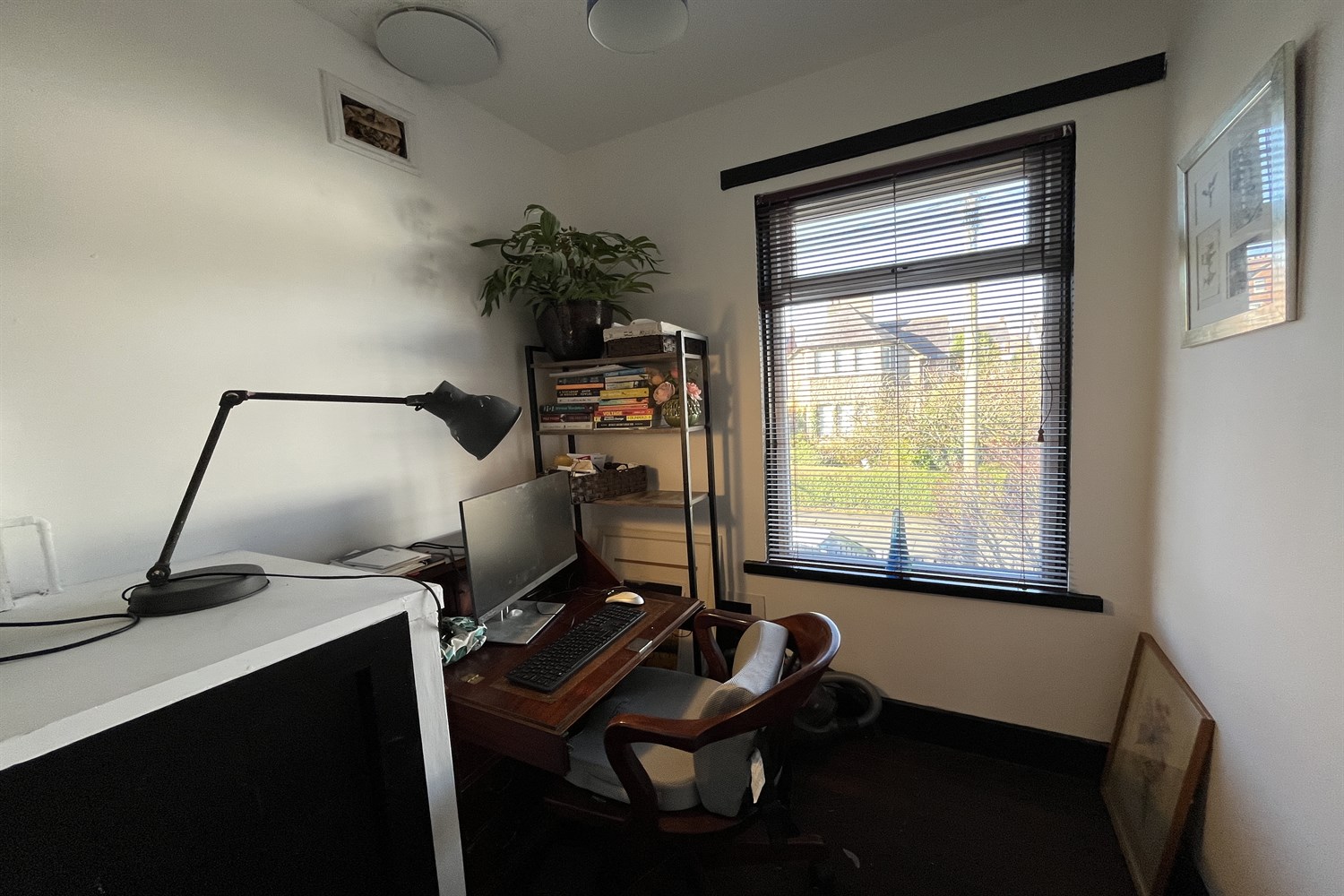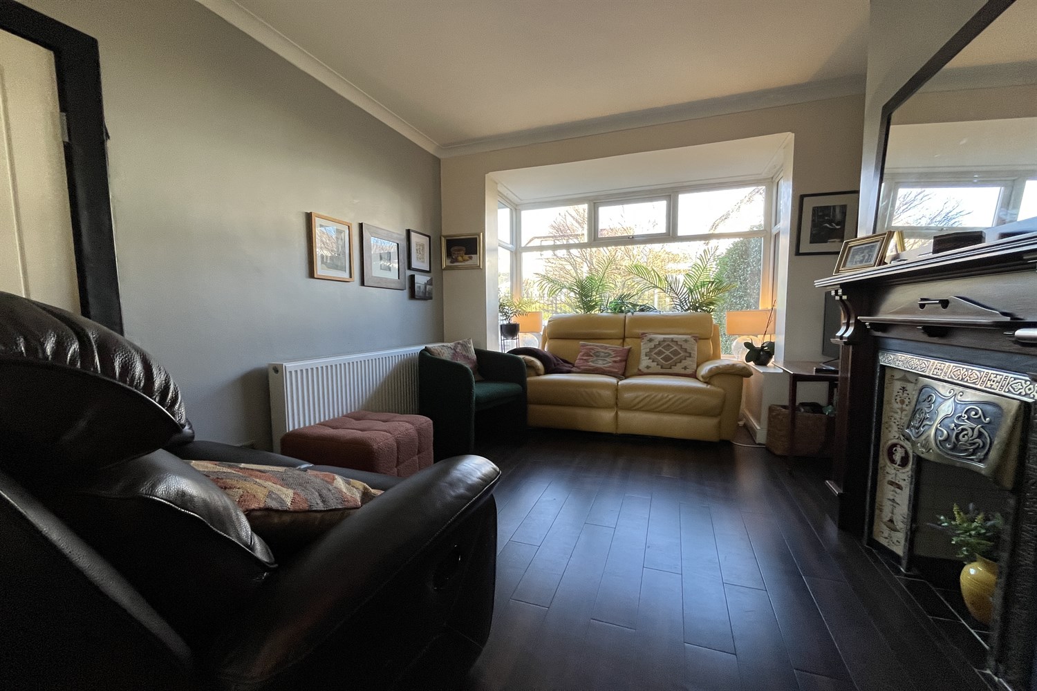 Solid wood flooring, single panelled radiator.