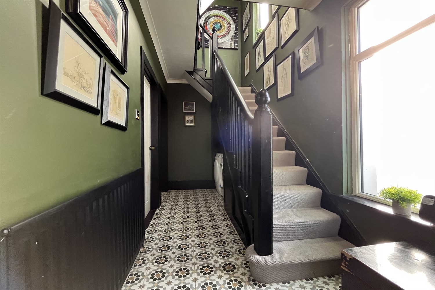PVC front door to: Hallway: Ceramic tiled floor, partially tiled walls, single panelled radiator, understairs arear plumbed for washing machine.