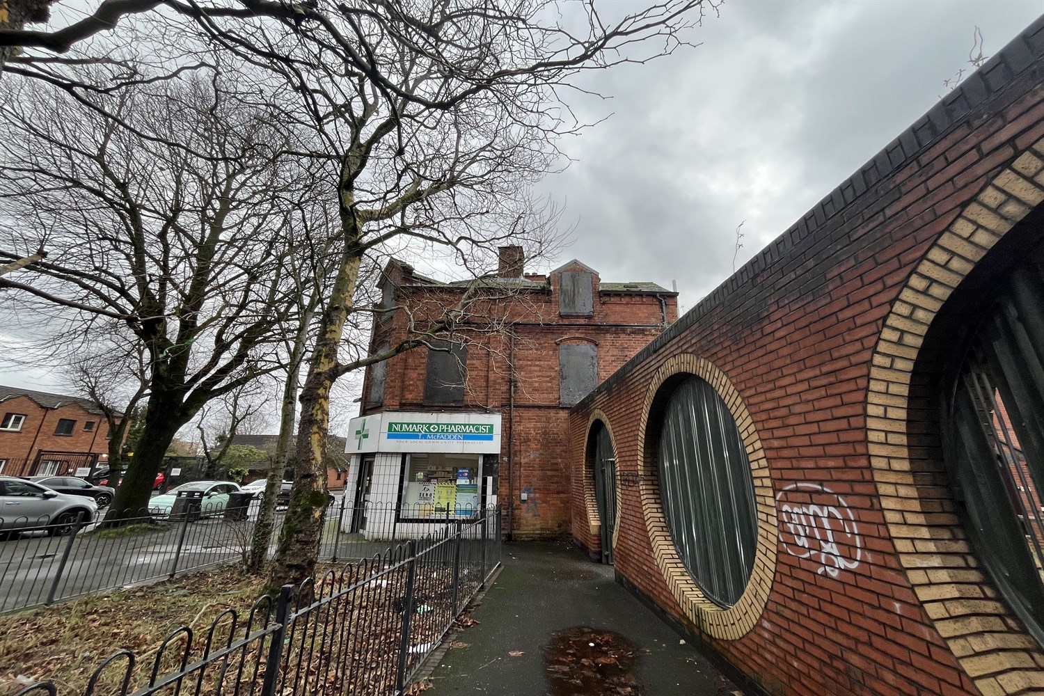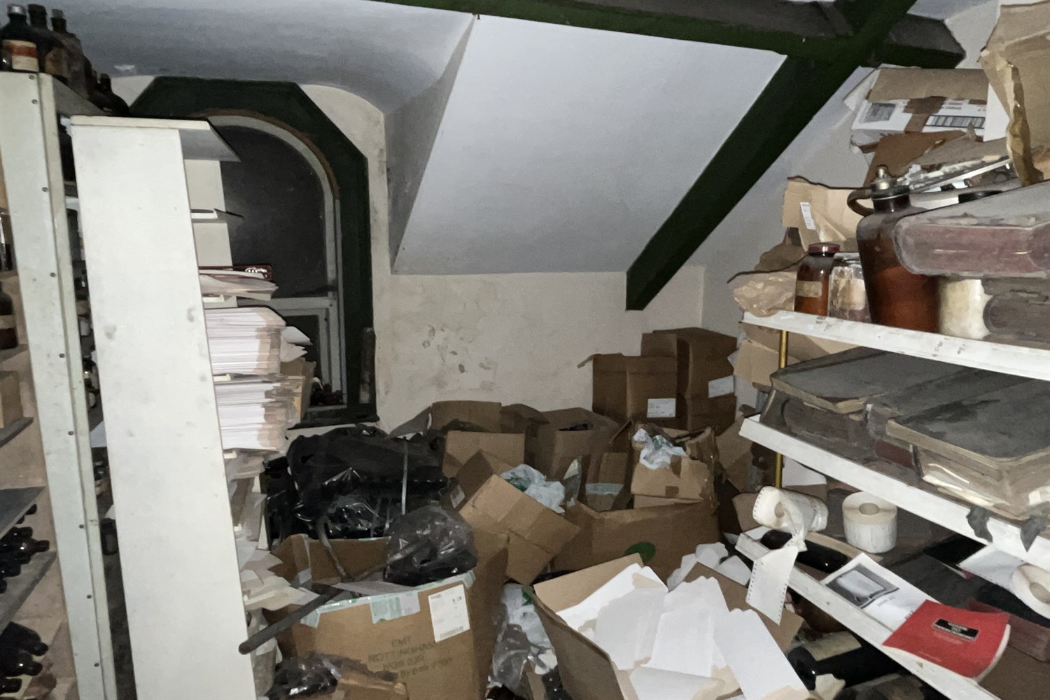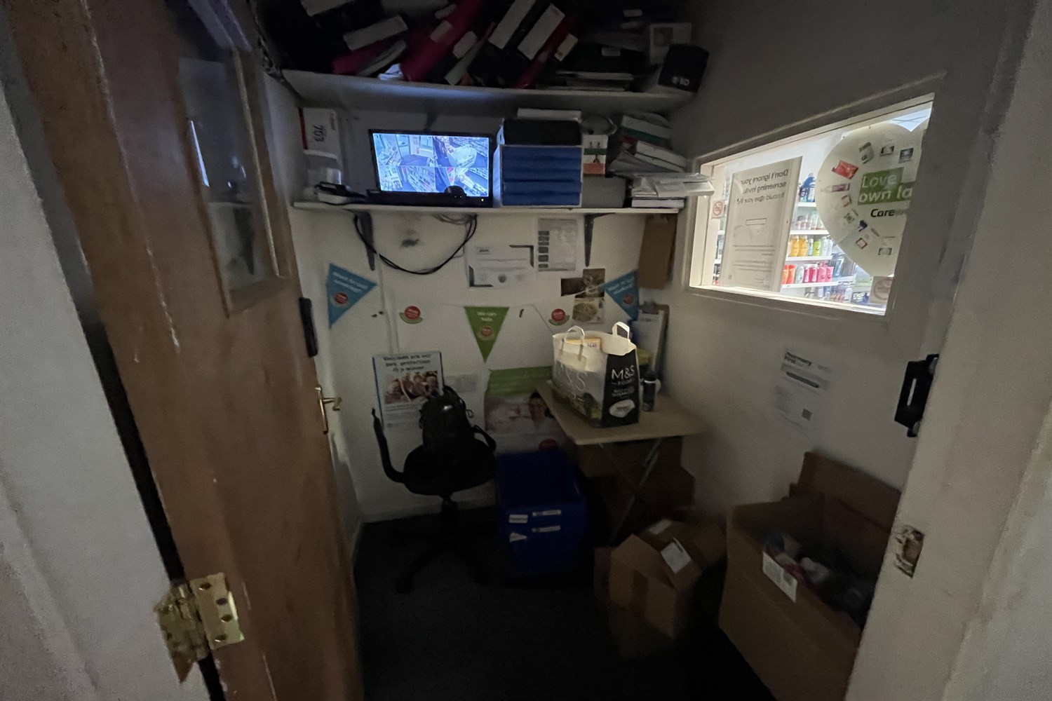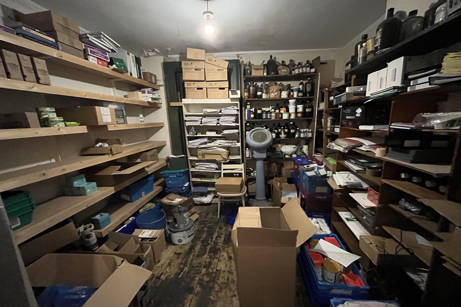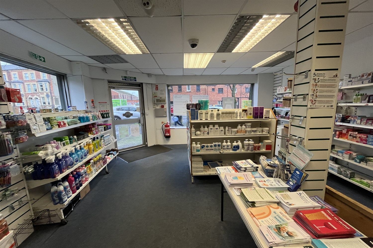 Dispensary, sink unit, display shelving.
