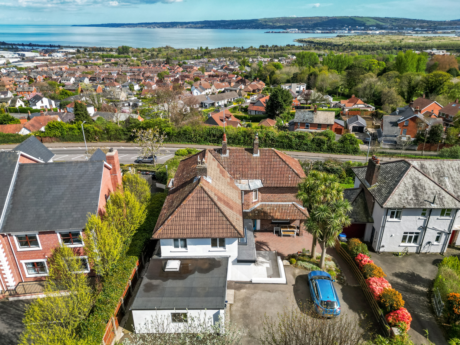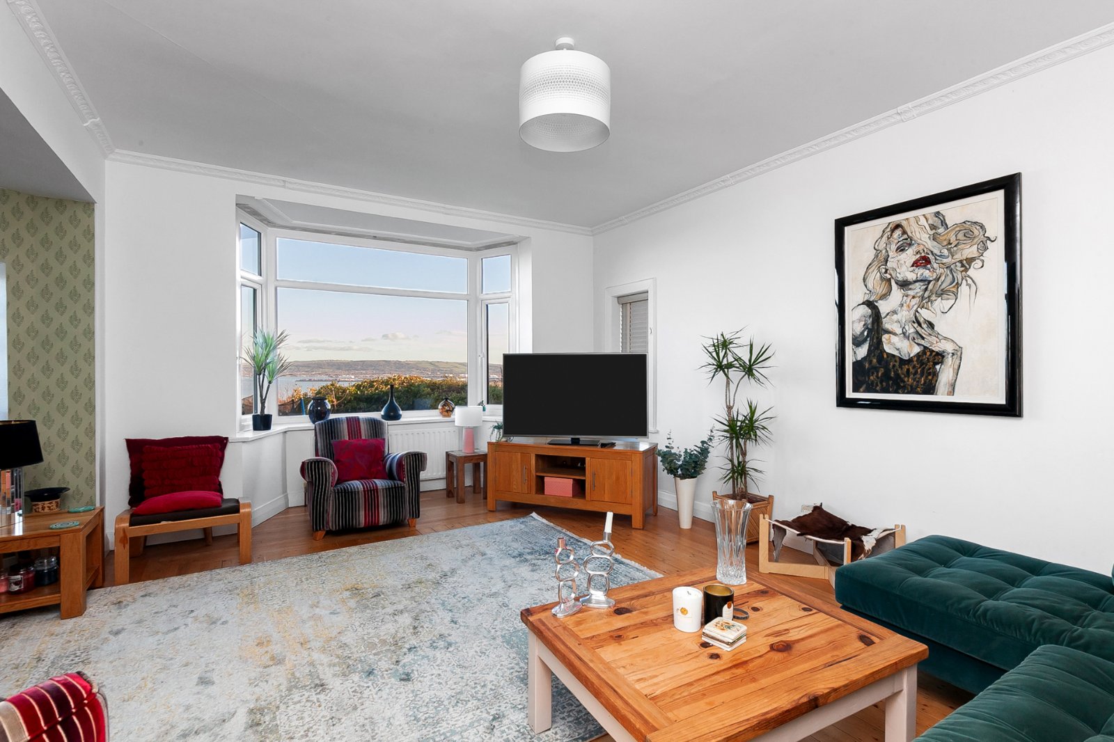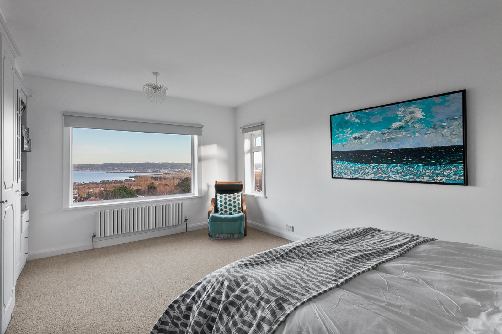 Upon entering, the home immediately impresses with its spacious layout and light-filled interiors. Two elegant reception rooms at the front of the property set the tone, offering versatile spaces that are ideal for both family relaxation and entertaining guests. Large windows frame the incredible views of Belfast Lough, flooding the rooms with natural light and creating a sense of serenity.
