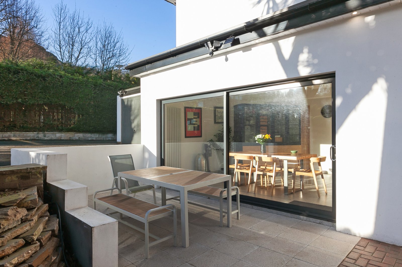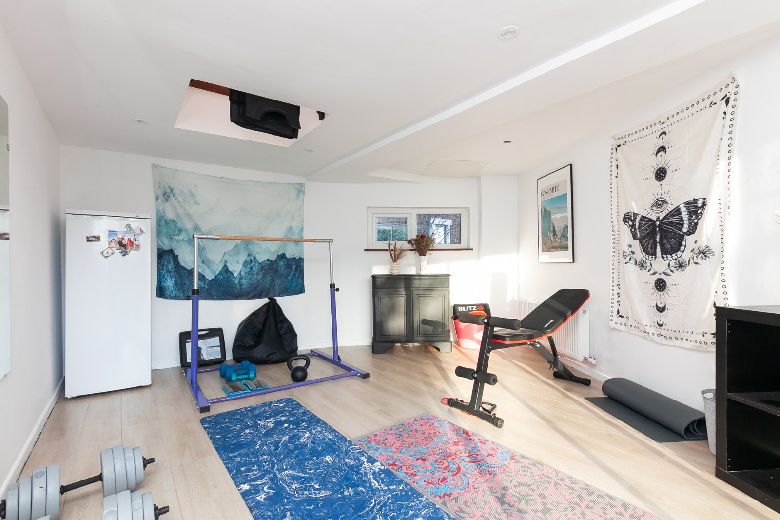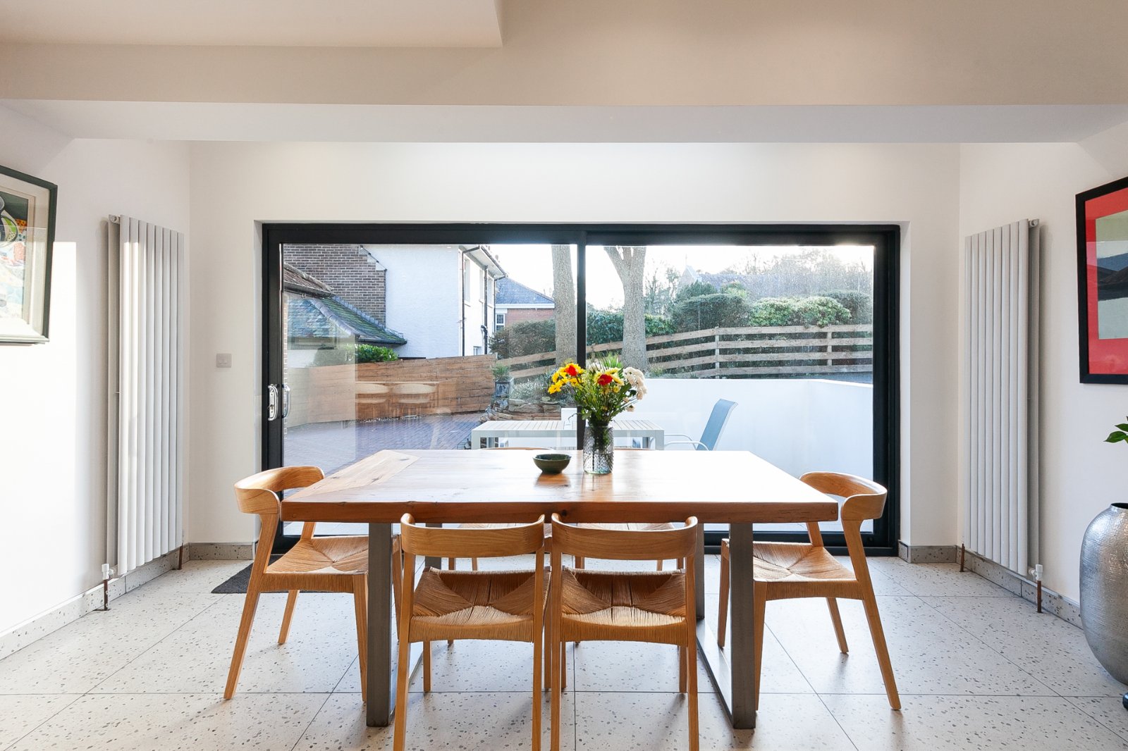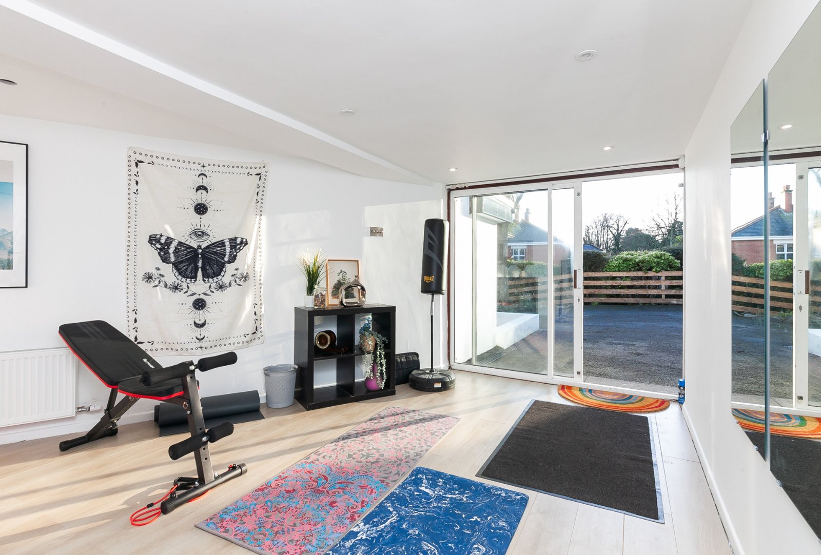 Laminate wood floor, power and light, radiator, glazed sliding door