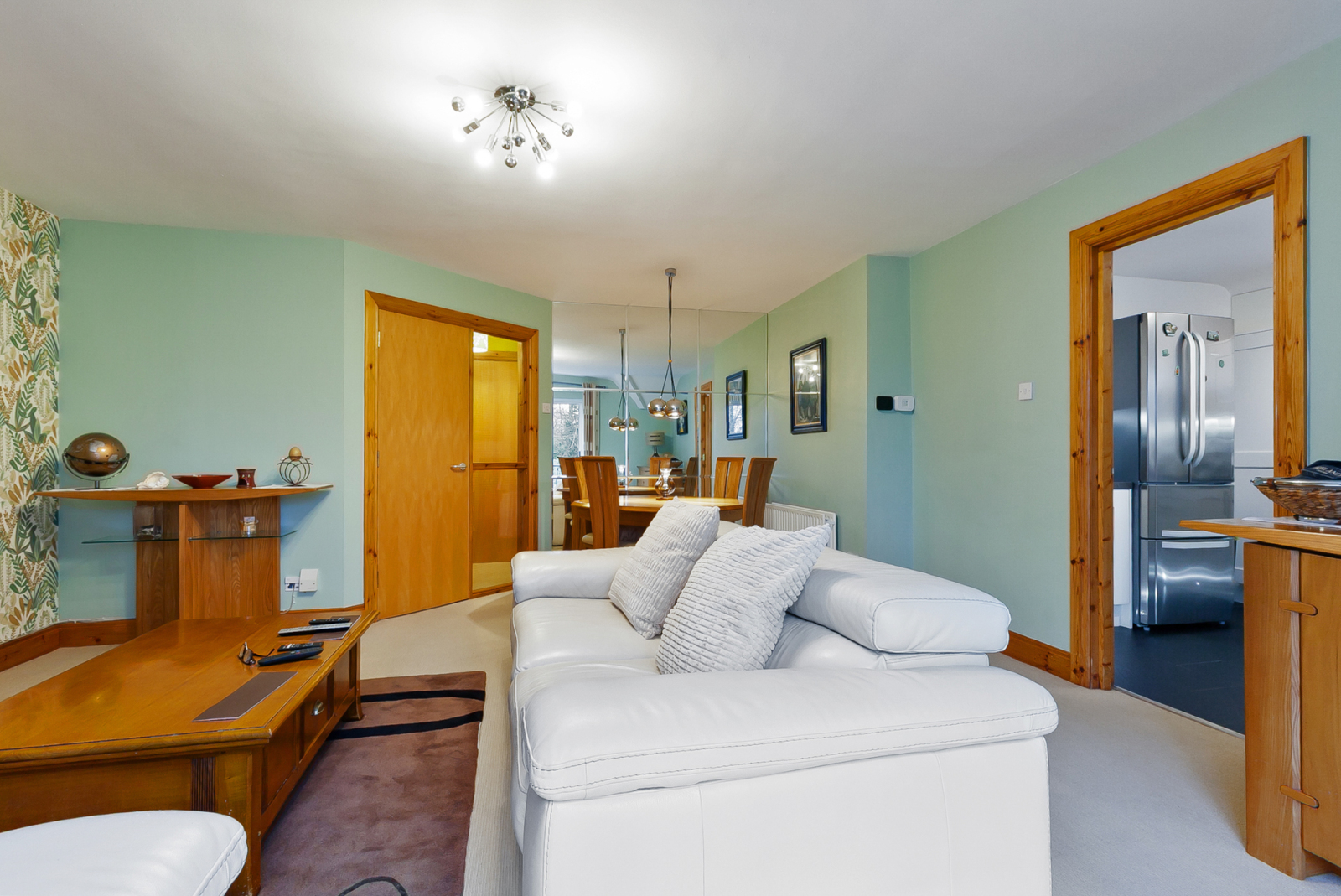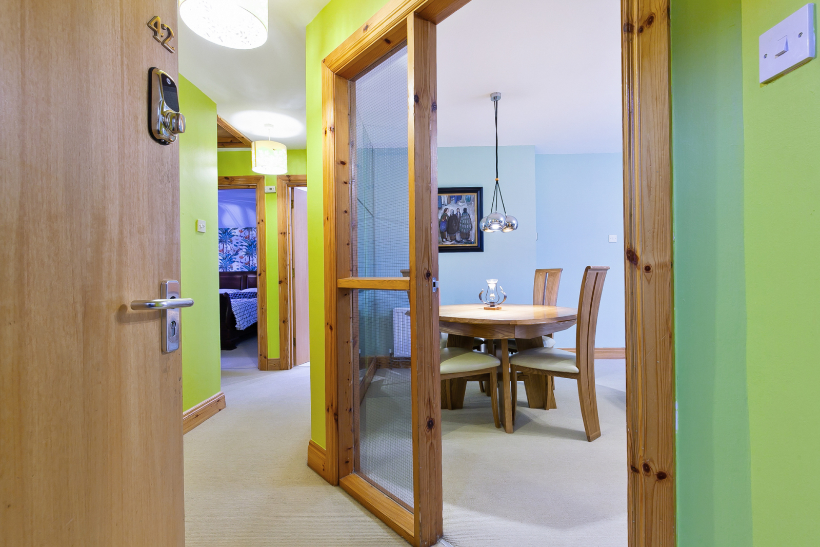Solid wooden front door, excellent range of storage and access to loft.