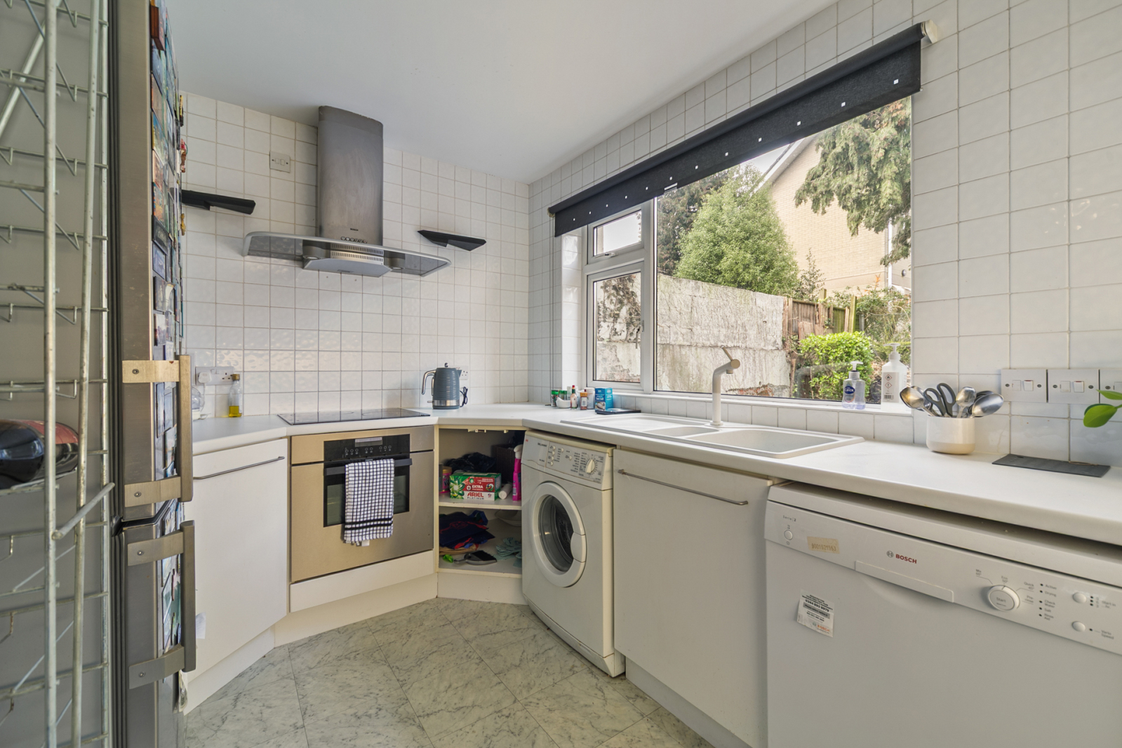The property provides bright and well-proportioned accommodation throughout. A generous living room offers an ideal space for relaxation and entertaining, while a separate fitted kitchen is both practical and spacious, with designated areas for a washing machine, tumble dryer and dishwasher.