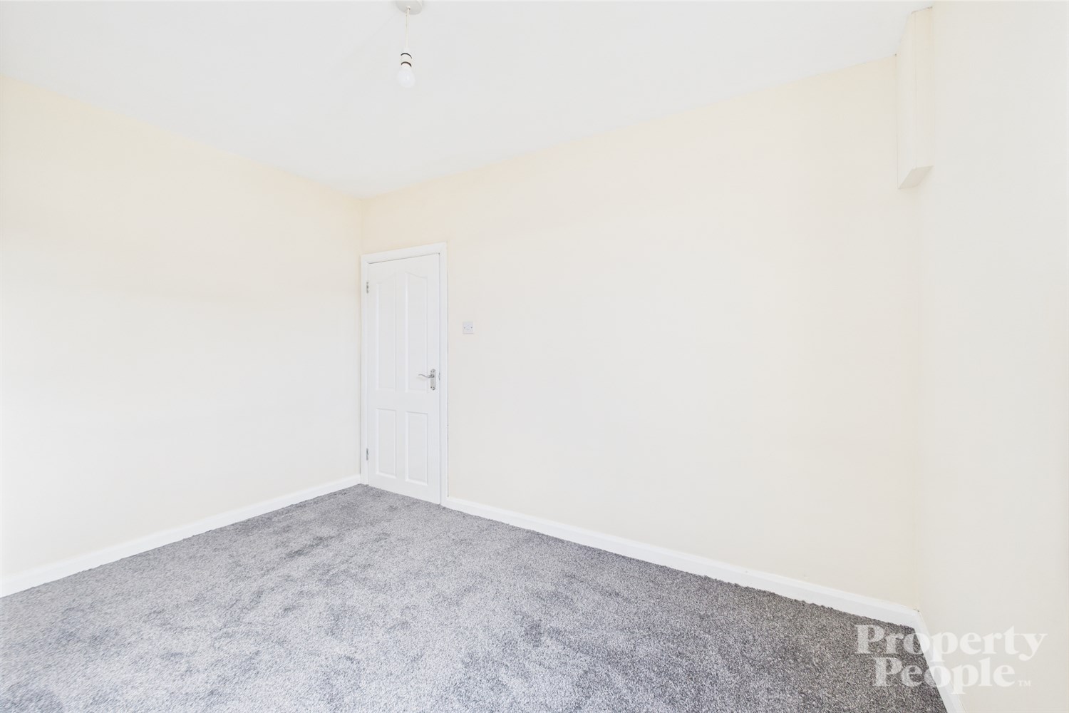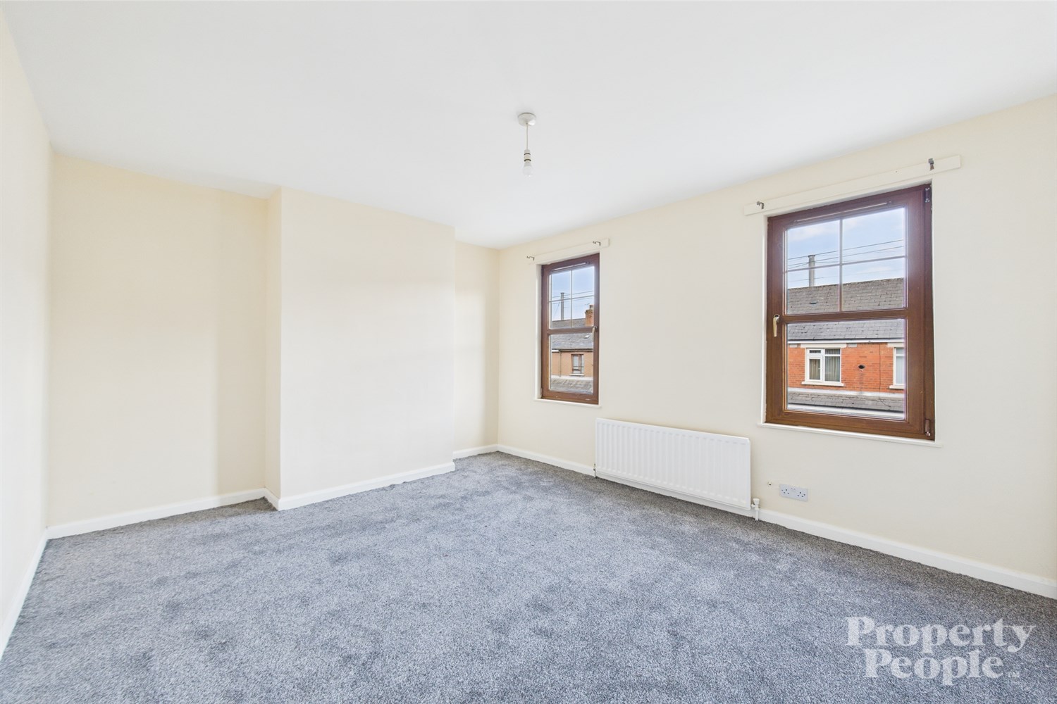 Double bedroom with rear aspect, carpet flooring, single panel radiator.