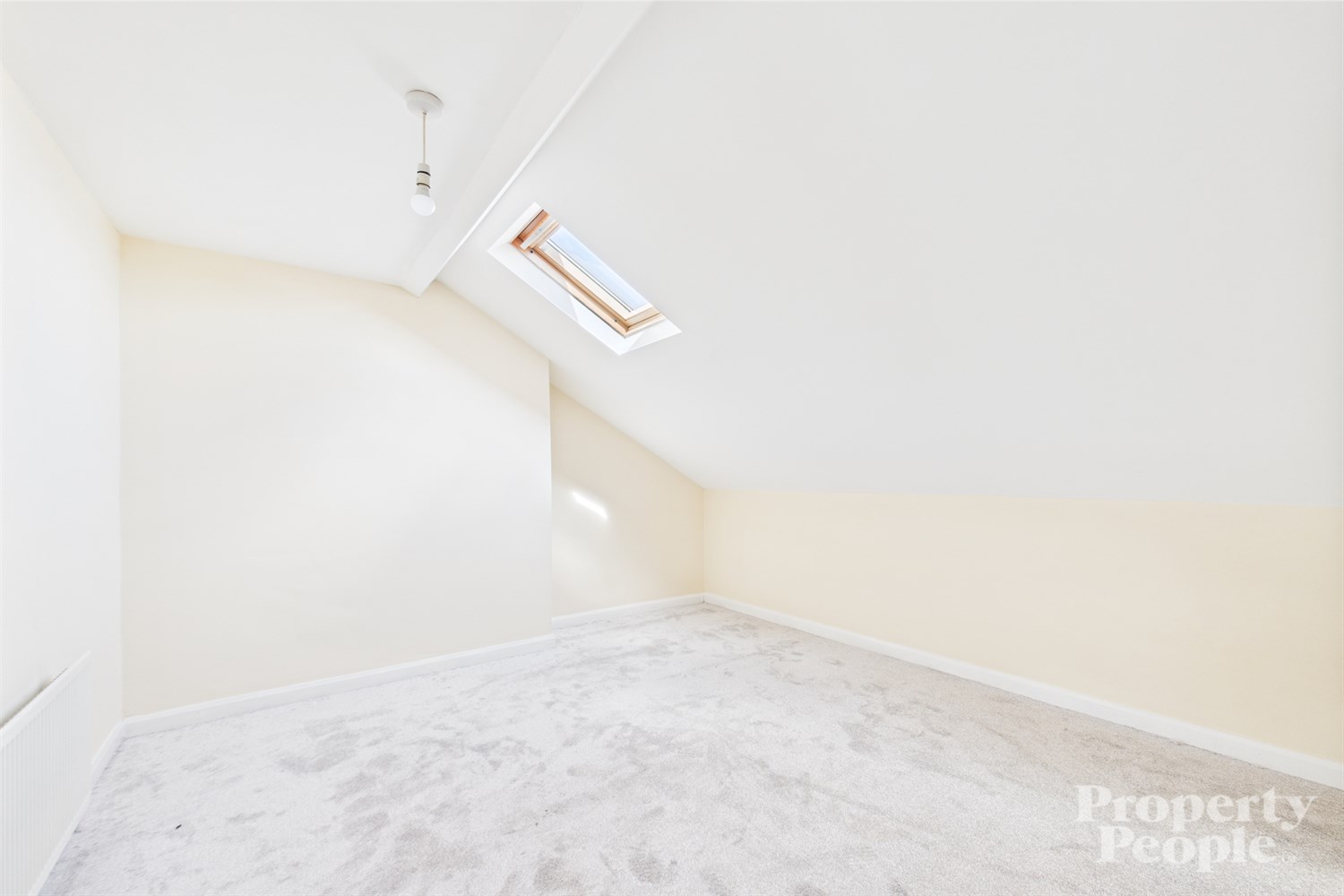 Bright and spacious double bedroom with front aspect, Velux window, carpeted flooring.