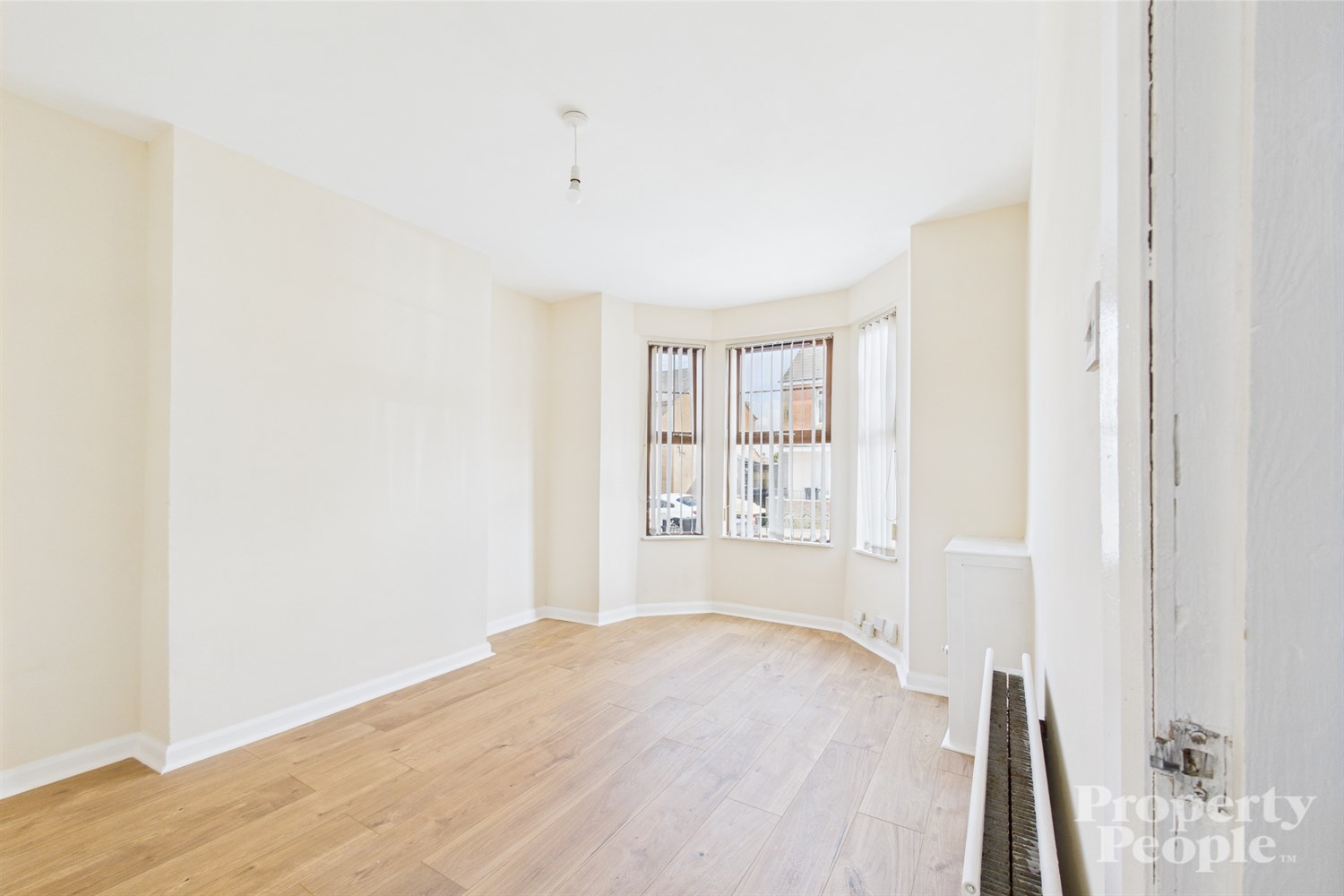 Spacious living room with bay window providing plenty of natural light, laminate wooden floor, double panel radiator, electrical box and electrical sockets.