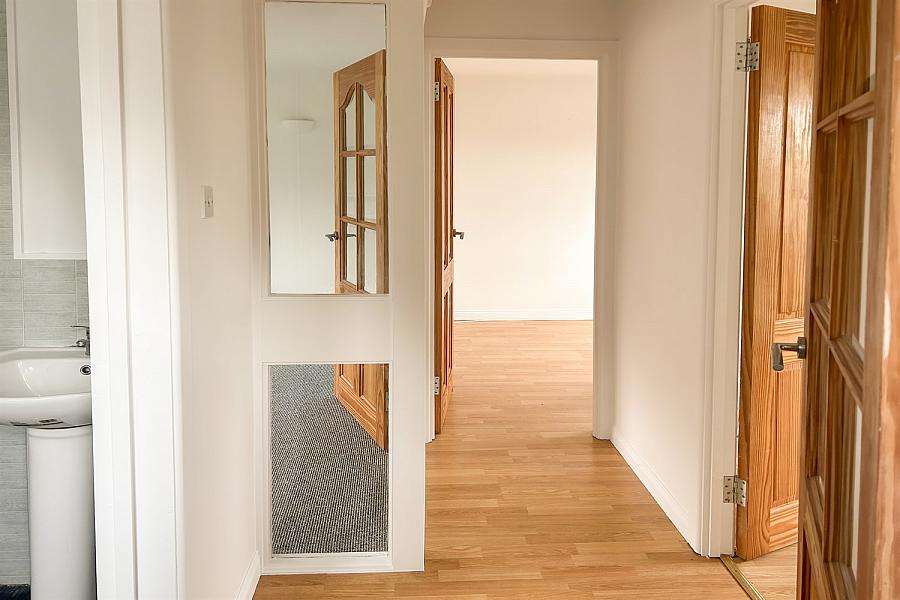 This bright and airy apartment is finished to a good standard and comprises a bright living area, fitted kitchen with a range of units, one large double bedroom, the other a well-proportioned double bedroom, modern bathroom with contemporary white suite, with shower over bath.