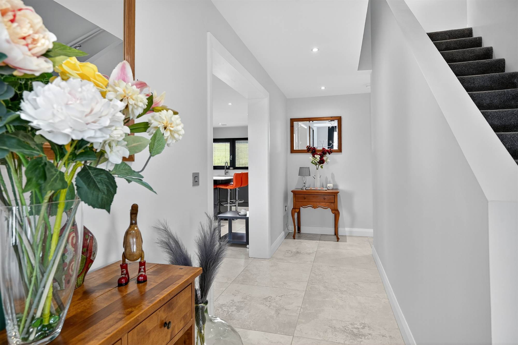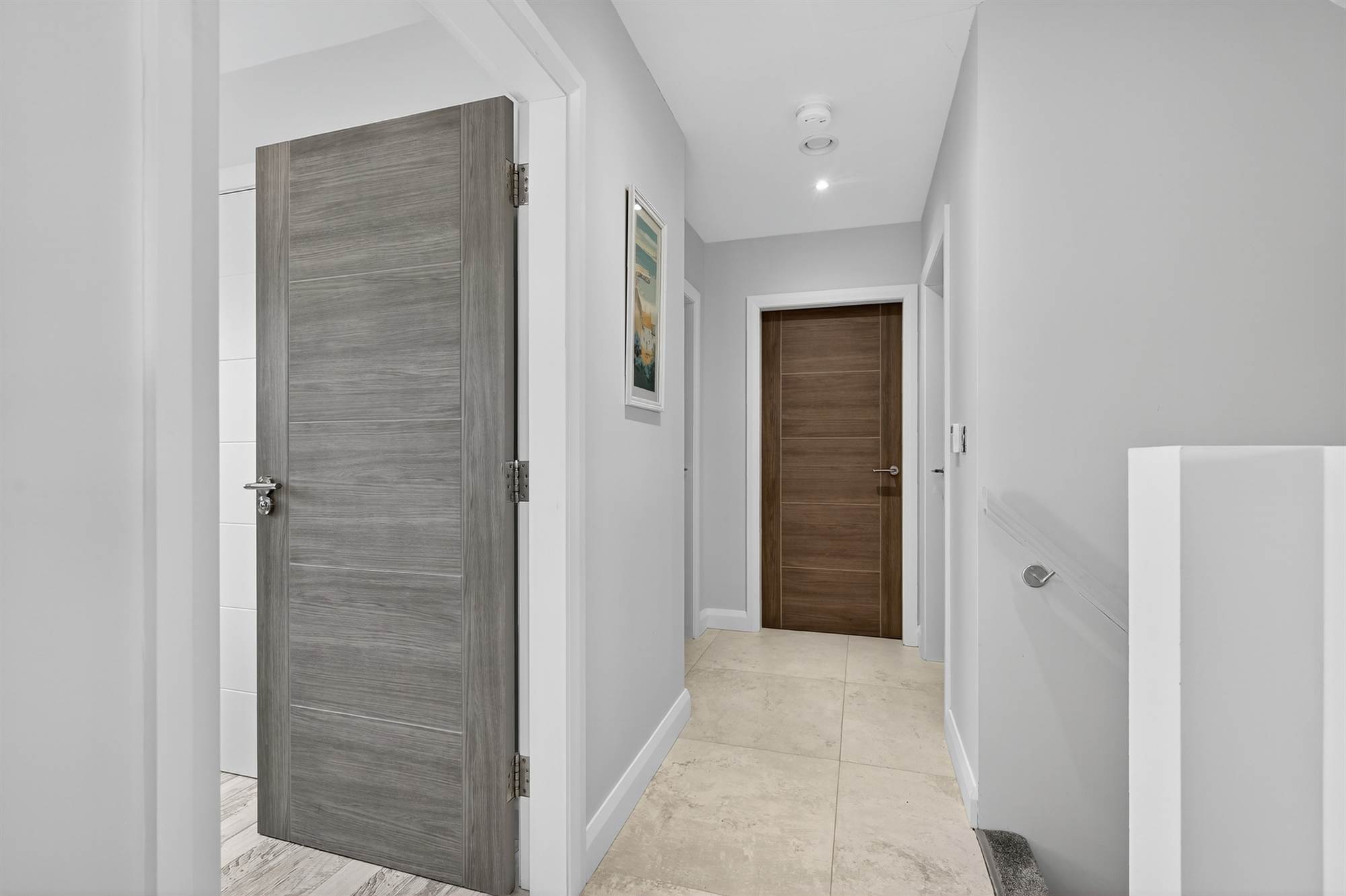 The spacious reception hall opens to an open plan living room, superb bespoke kitchen and dining area. Additionall on the ground floor are a utility room, well-proportioned office (potential bedroom 5) and WC facility off the hallway. A ground floor guest bedroom with ensuite facility gives a useful "future proofing" option. On the first floor are two additional well-proportioned bedrooms, a family shower room. Additionally a magnificent first floor drawing room opens to a good sized balcony area.