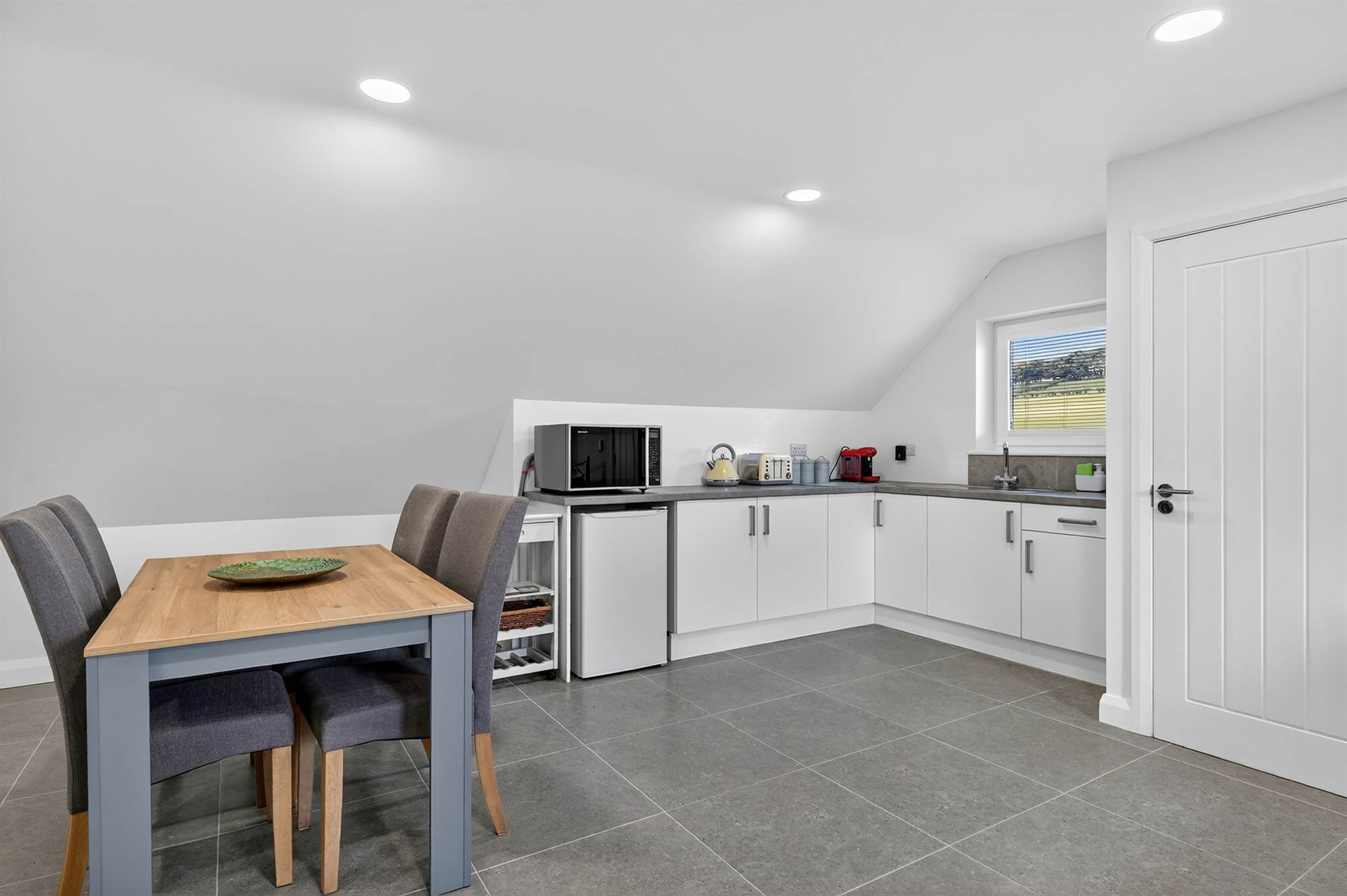 Apartment comprises a spacious L-Shaped kitchen, living and bedroom area and shower room, under floor heating and separate oil fired heating system