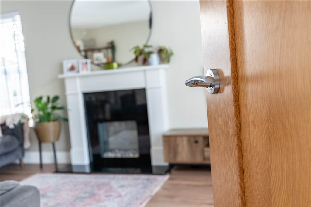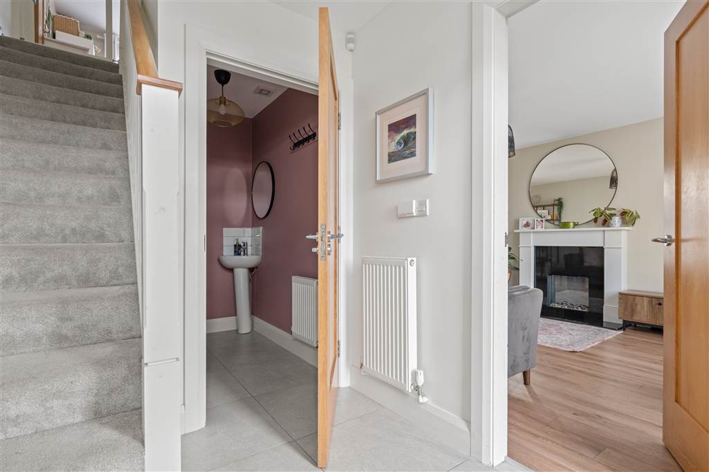 With composite front door with glazed surround. Staircase to first floor. Tiled flooring.