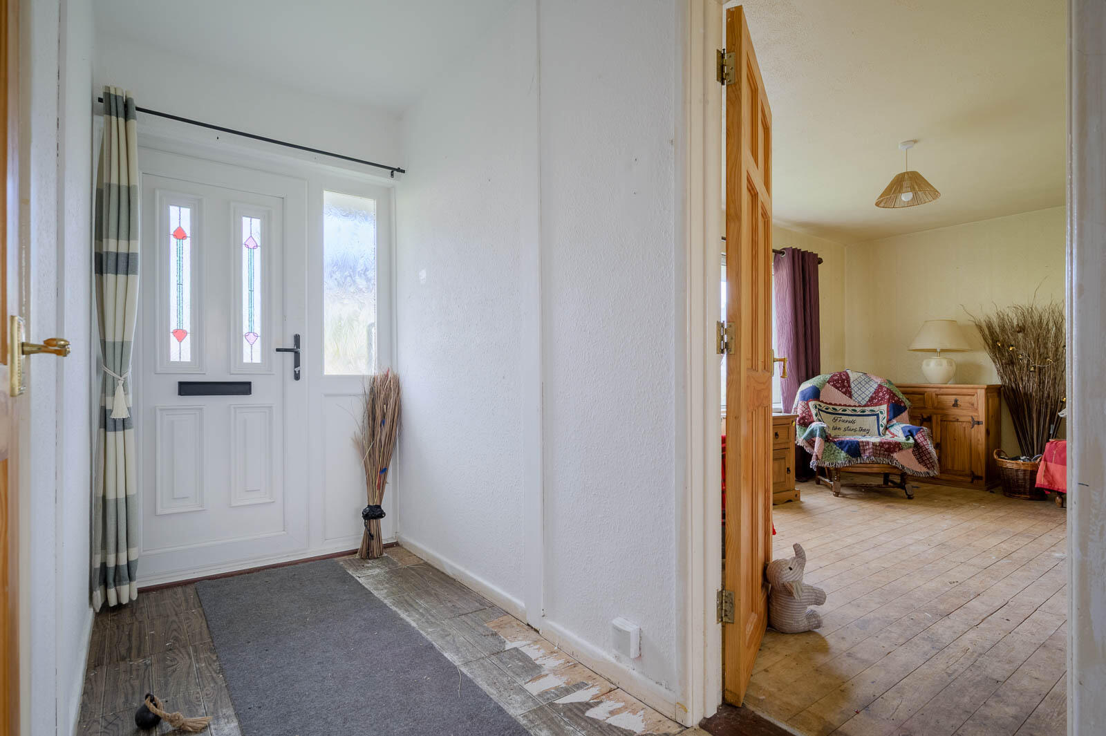 PVC double glazed front door into entrance hall.
