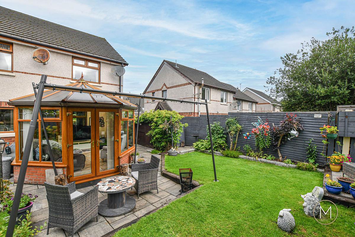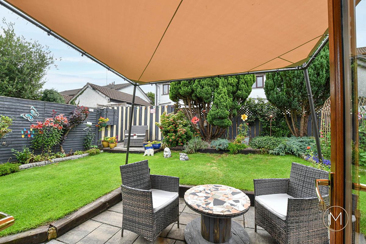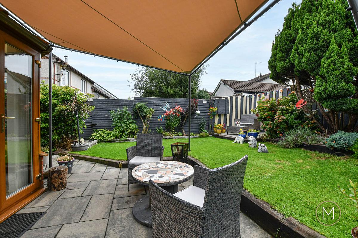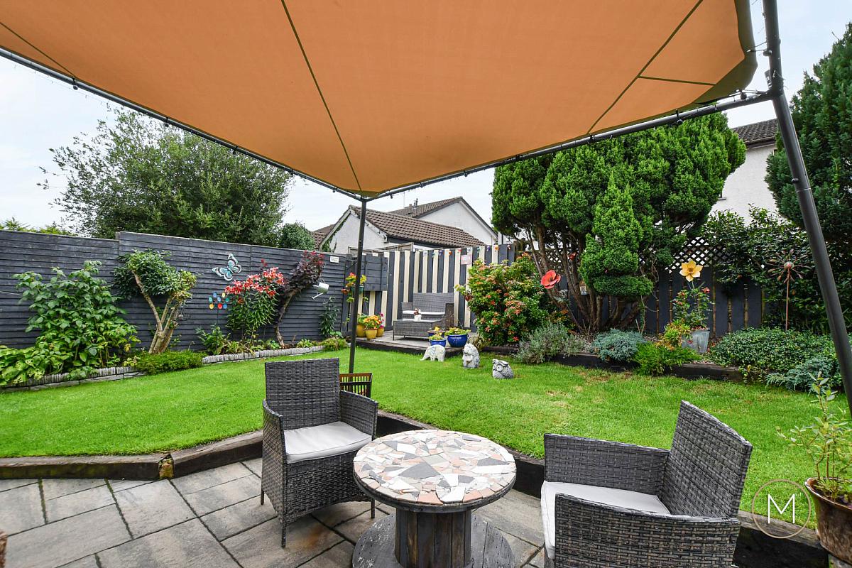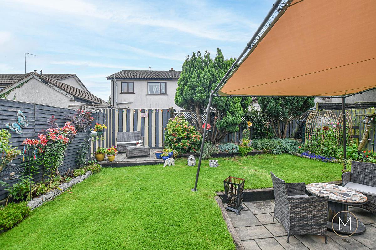 To the rear, the landscaped garden has been designed for enjoyment and low-maintenance living. A well-maintained lawn and paved patio area create a wonderful space for children to play, hosting BBQs, or simply enjoying time with family and friends in the sunshine.