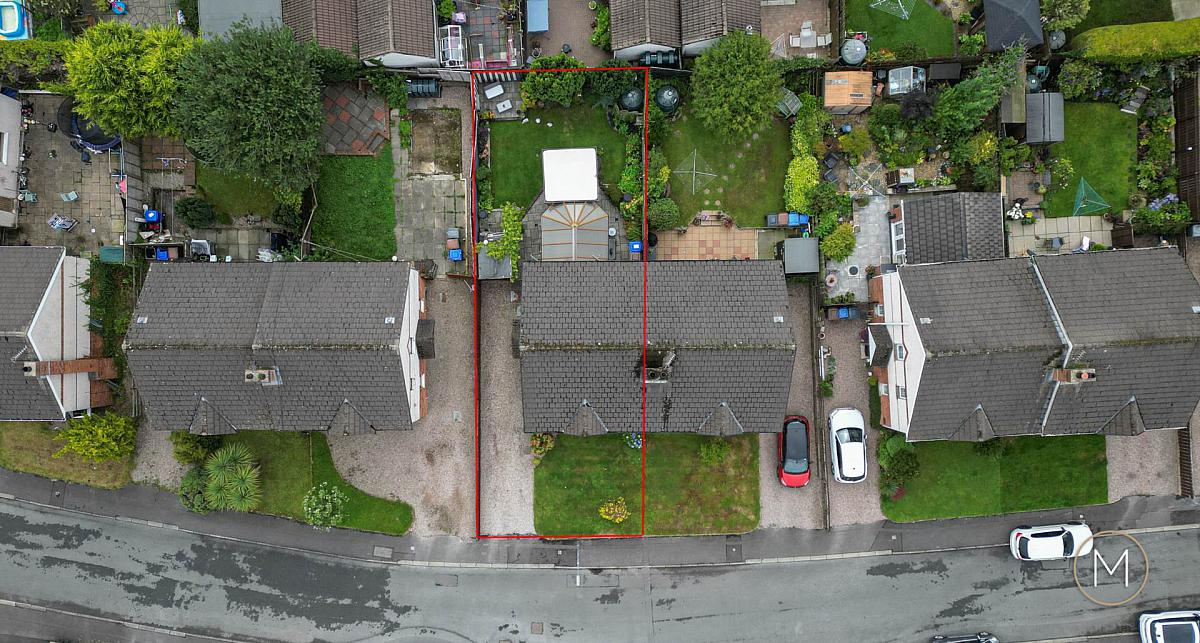 To the front, the home benefits from a generous garden with lawn area and a private driveway offering ample off-street parking.