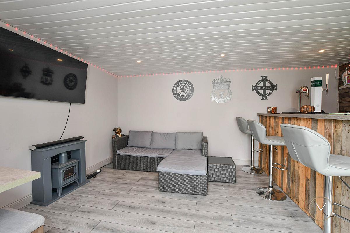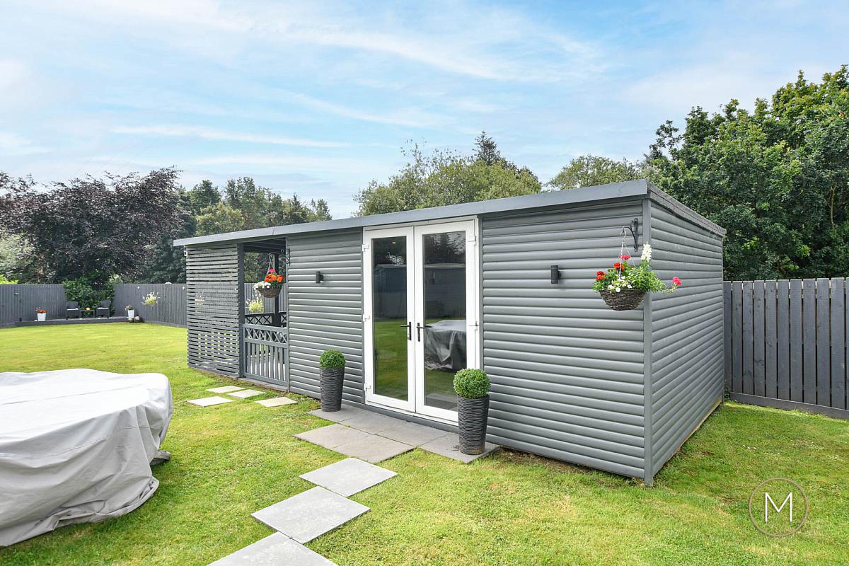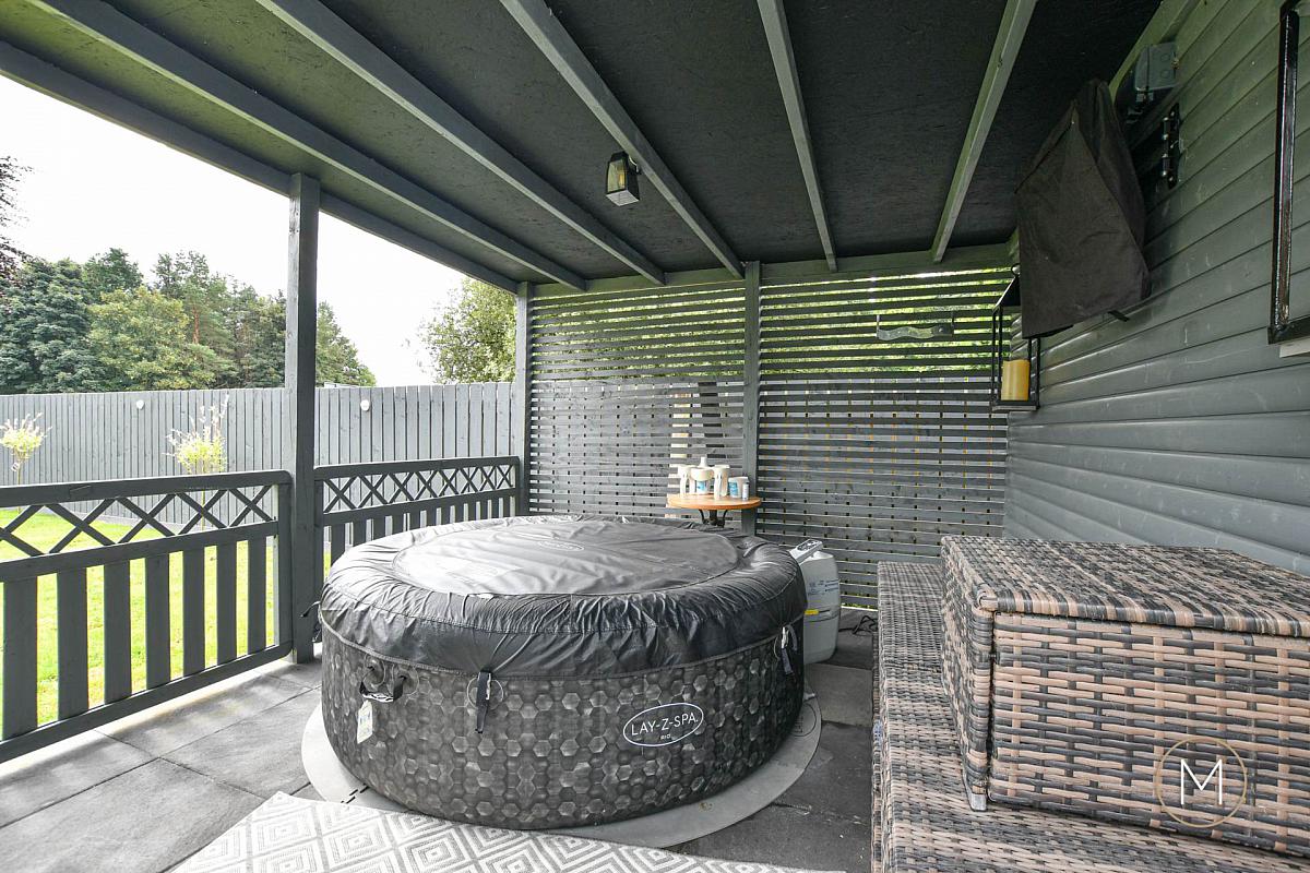 A standout feature is the purpose-built bar area, perfect for entertaining guests, alongside a covered hot tub zone complete with a TV point, making this a year-round social hub.