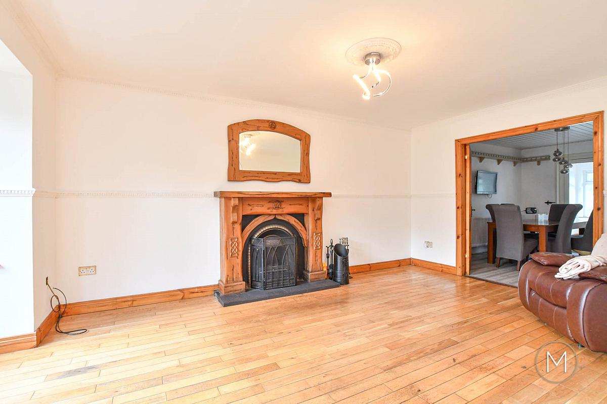 Internally, the home is thoughtfully laid out to maximise both comfort and practicality. The welcoming entrance hallway features convenient understairs storage, ideal for busy family life. The bright and spacious living room is enhanced by a charming bay window, allowing natural light to flood the space, while the open fire with back boiler creates a cosy focal point.