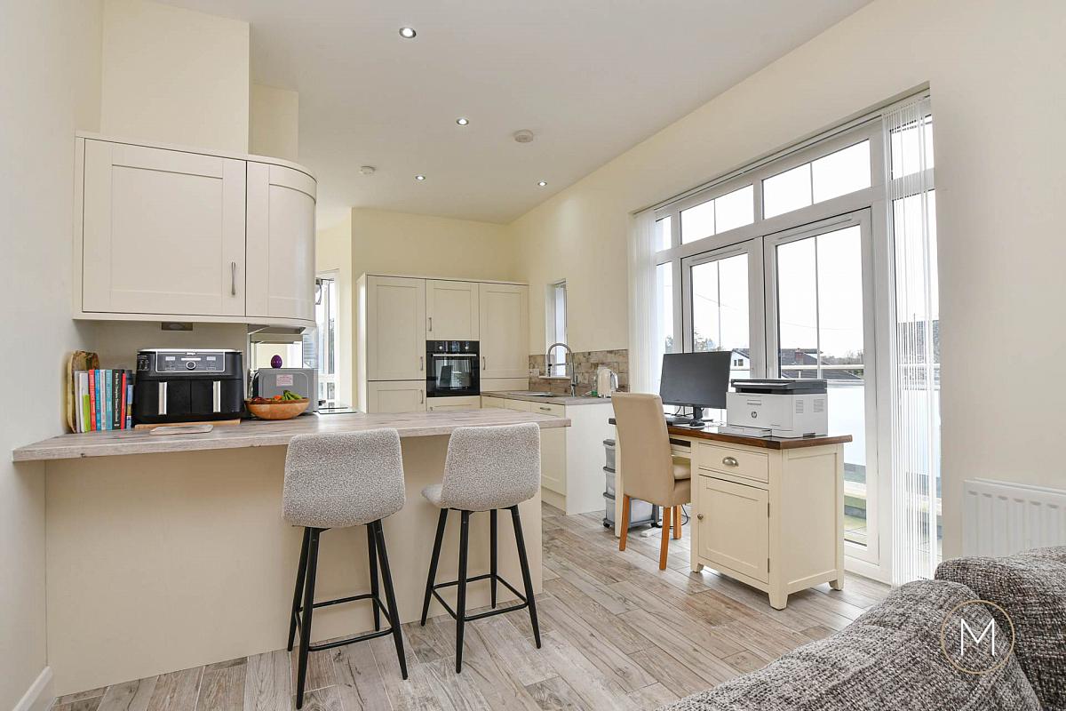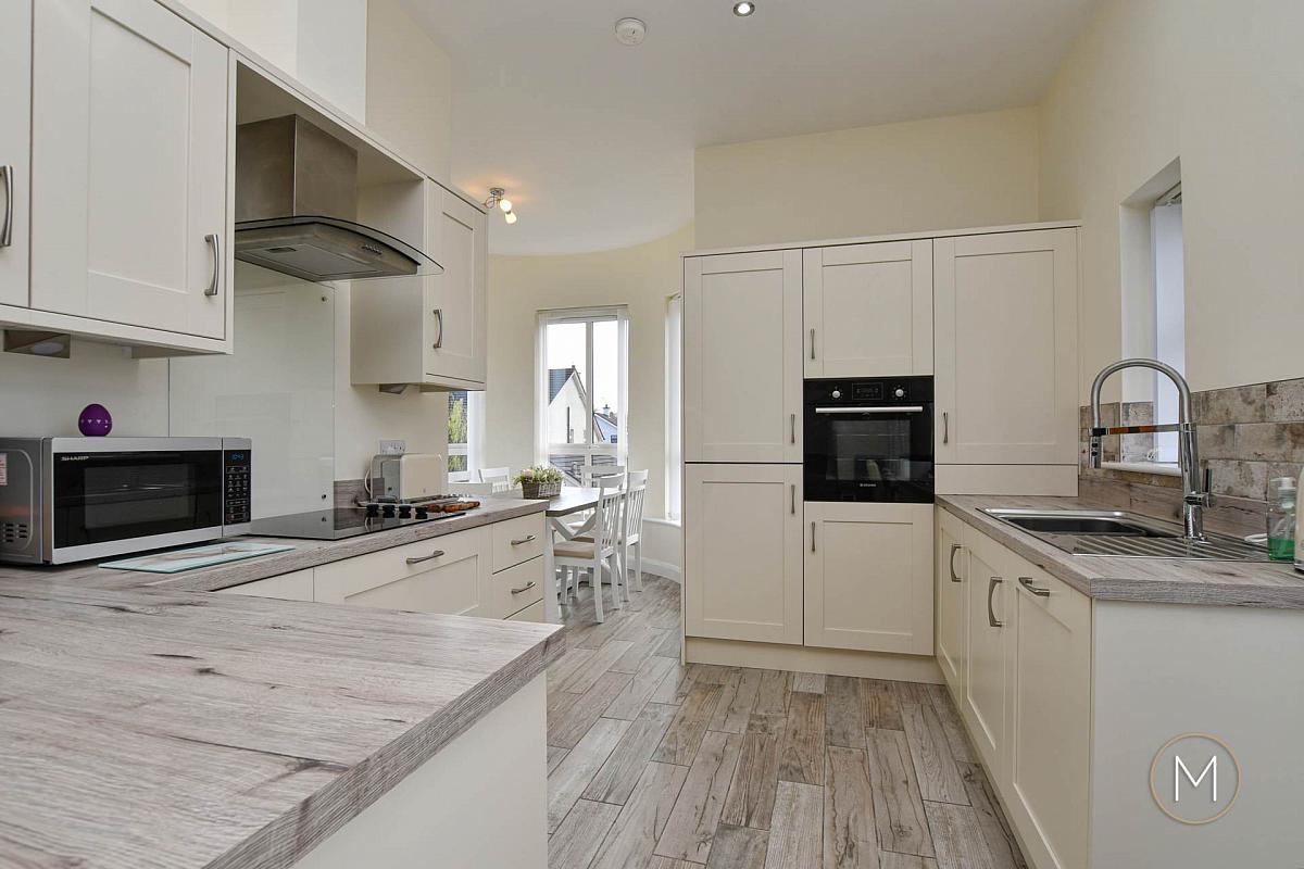 Stunning Kitchen with Solid Wood Doors and a Host of Built in Appliances & Breakfast Bar Seating