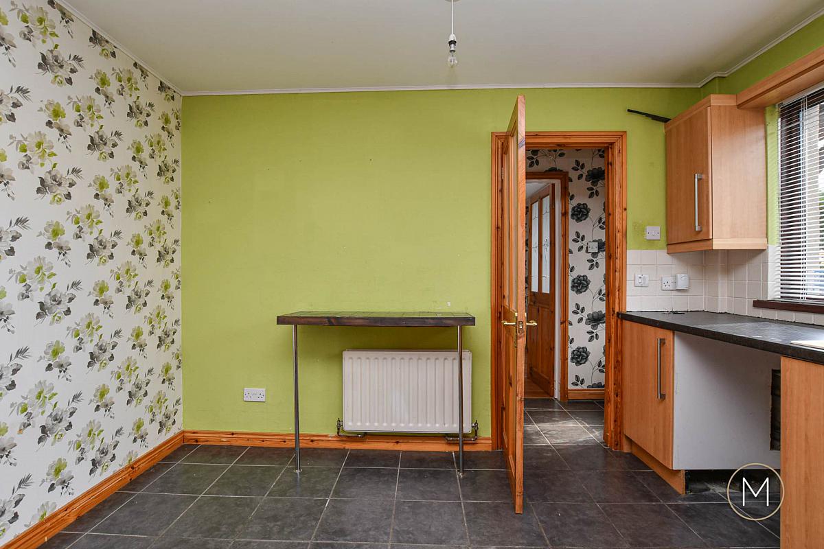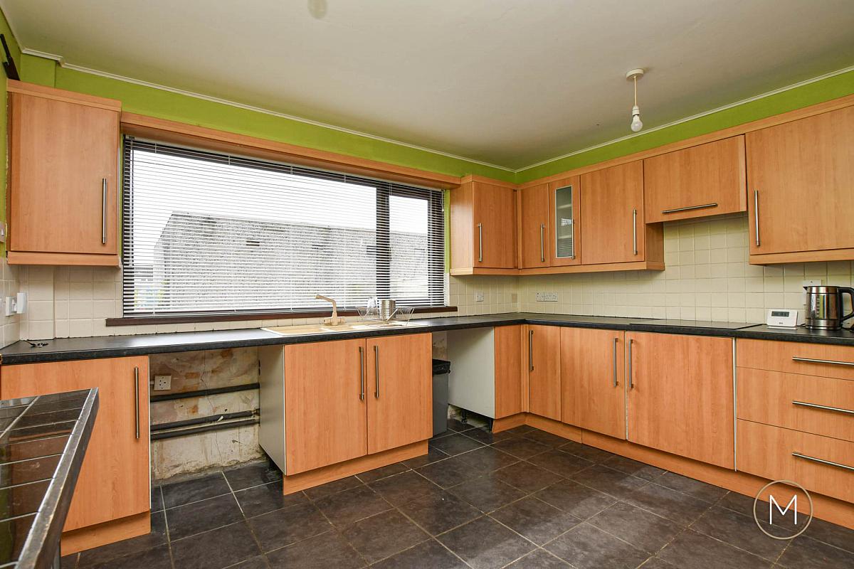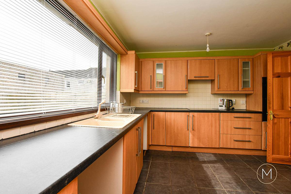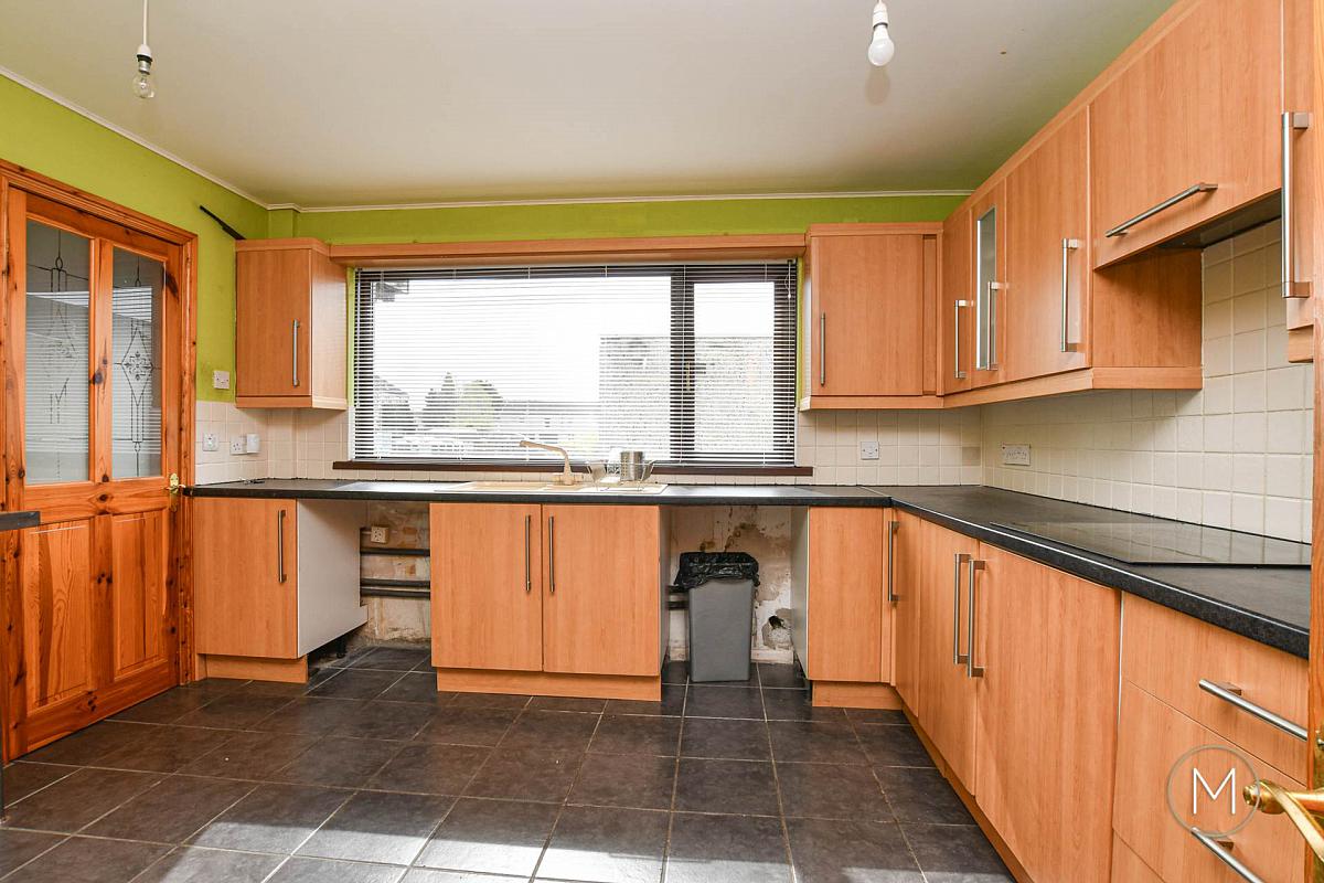 Fully fitted kitchen comprising of an excellent range of high and low level units; 1 ½ bowl sink unit; Formica style work surfaces; tiled floor; tiled splashback; plumbed for washing machine; space for dishwasher; built in 1 ½ oven, ceramic hob and concealed extractor fan