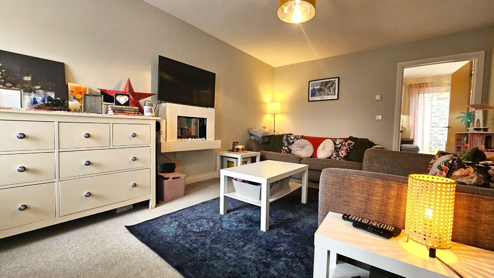 Lounge with feature fireplace