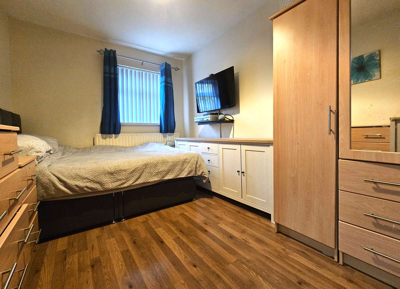 3 bedrooms all with laminate flooring and 1 with built in storage