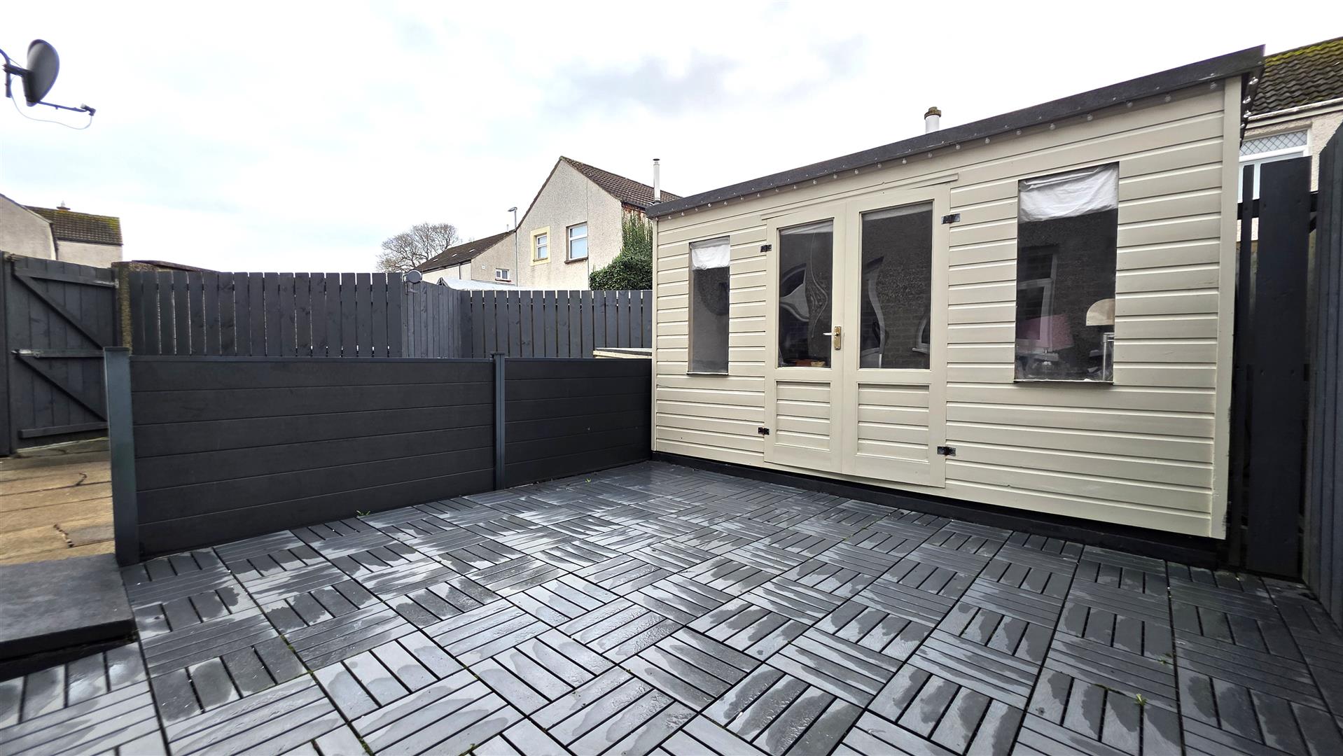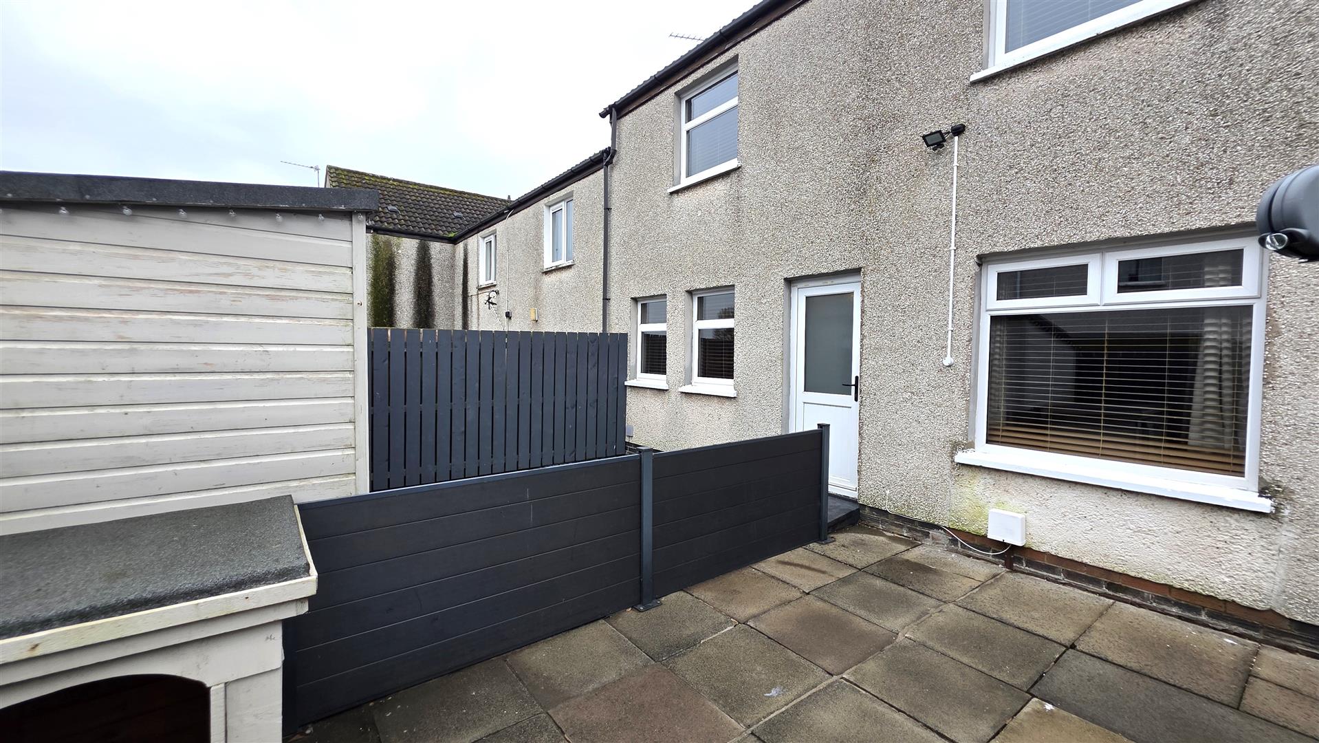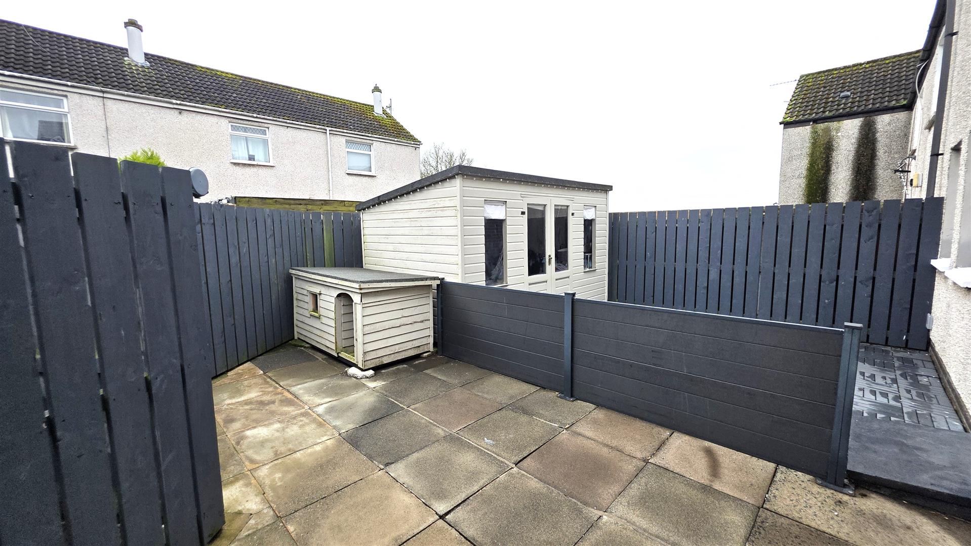 Fully enclosed and paved rear garden, with six foot timber fencing and the pedestrian gate to front. Concealed bin area. Composite decking. Outside lighting. Outside Power sockets. Garden shed is negotiable.