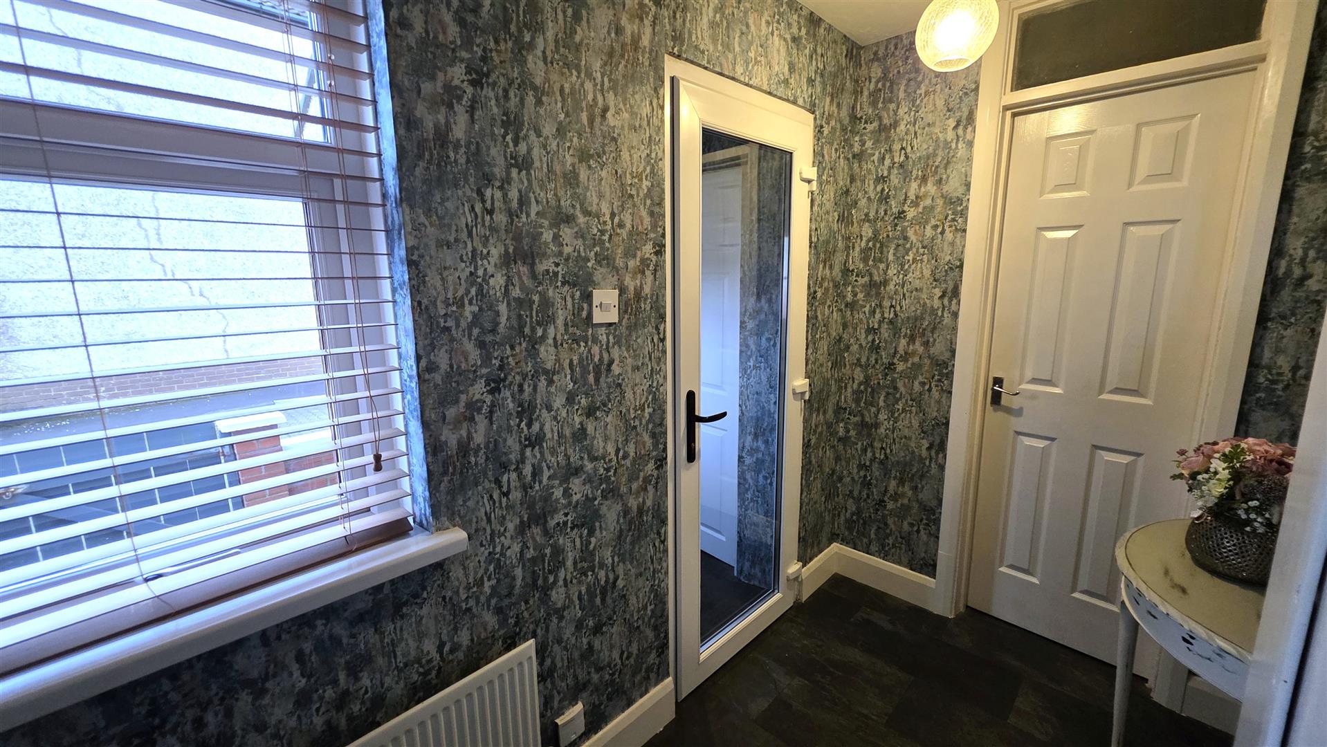 Entrance hall with slate effect wood laminate floor