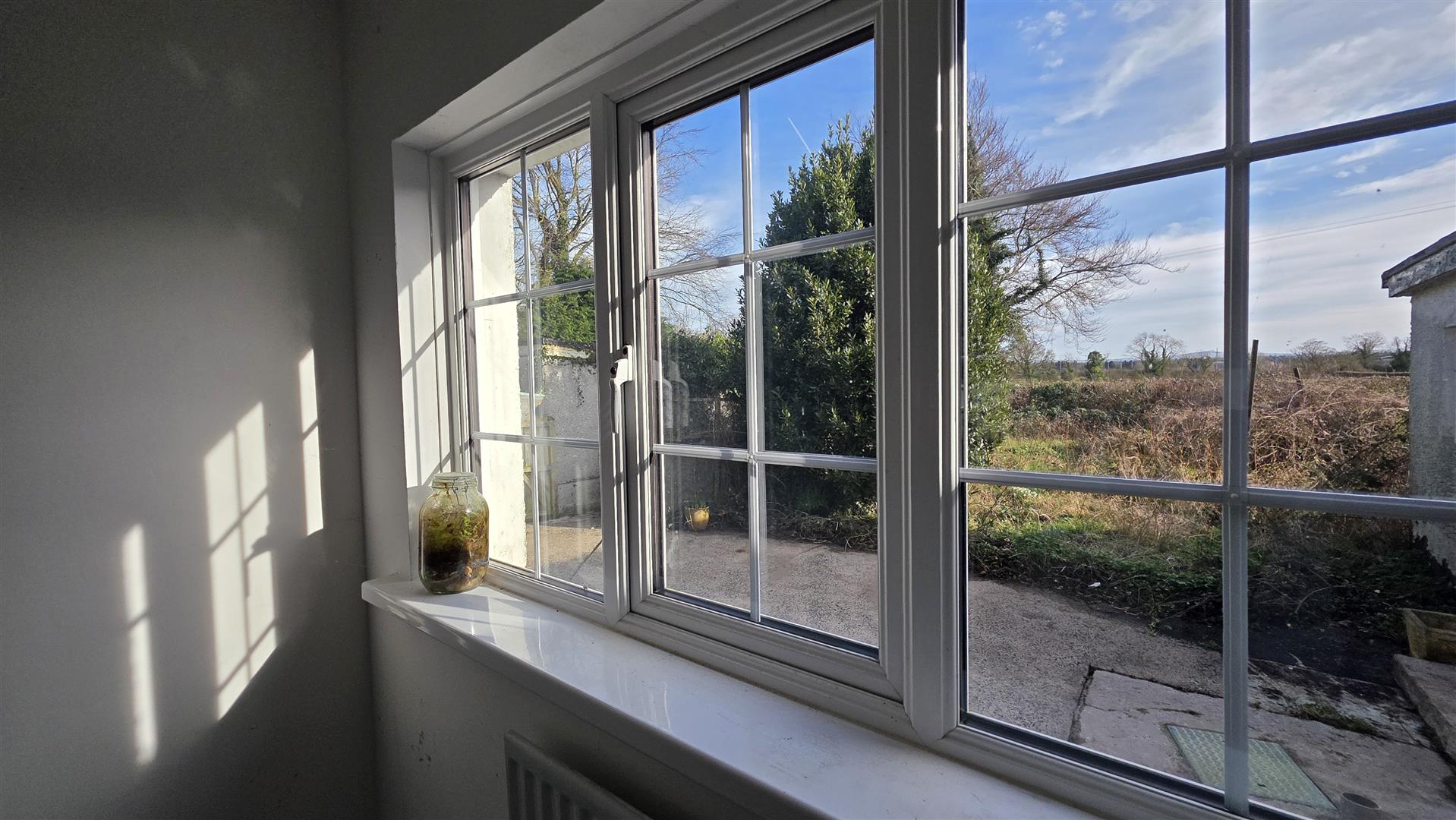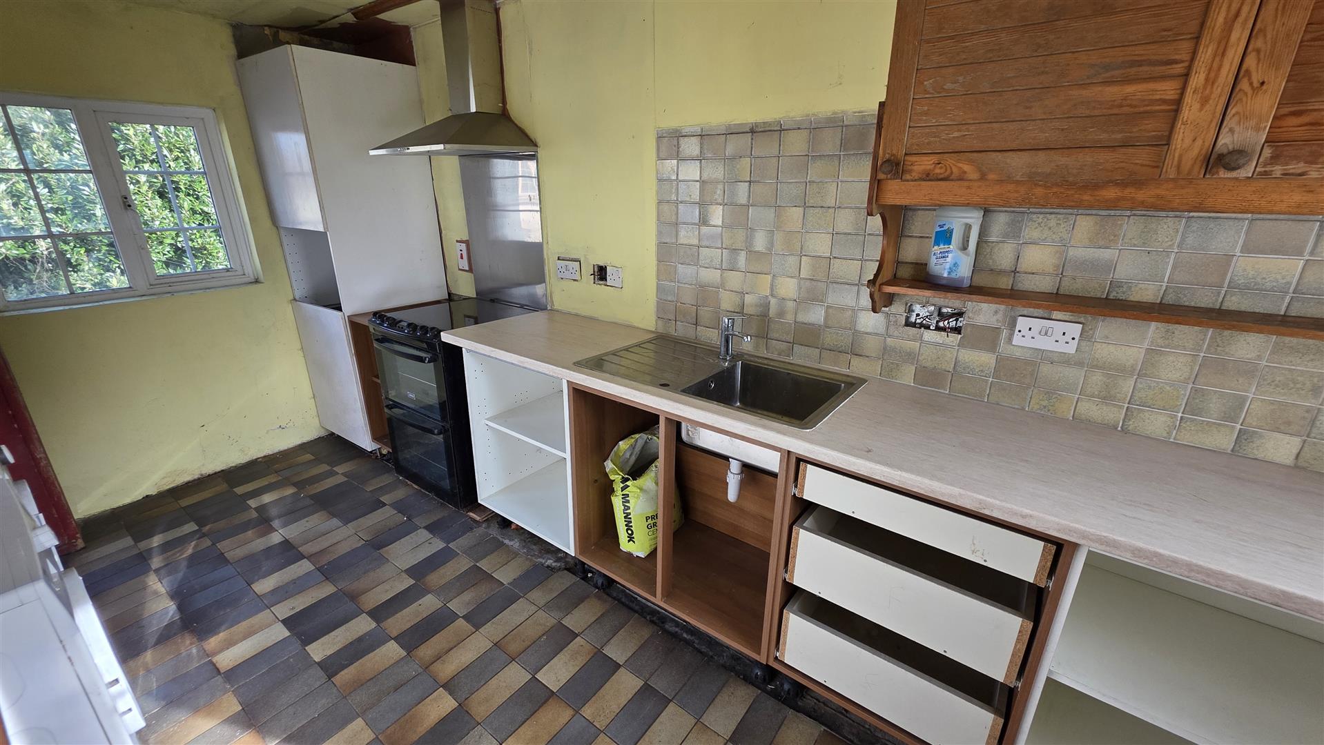 Range of low level units. Space for cooker. Single drainer stainless steel sink unit and mixer taps. Contrasting work surfaces. Plumbed for washing machine and space for dryer. Part tiled walls to work surfaces. Part tiled floor. Door to integral boiler house with oil-fired boiler. Dual aspect windows. Door to rear.
