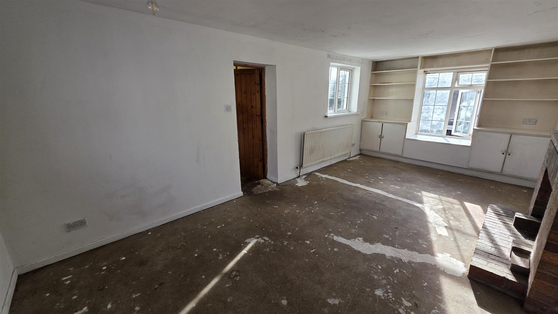Open fire with brick surround and hearth. Wall of built-in storage cupboards, shelving and window seat. Dual aspect windows. Double radiator.