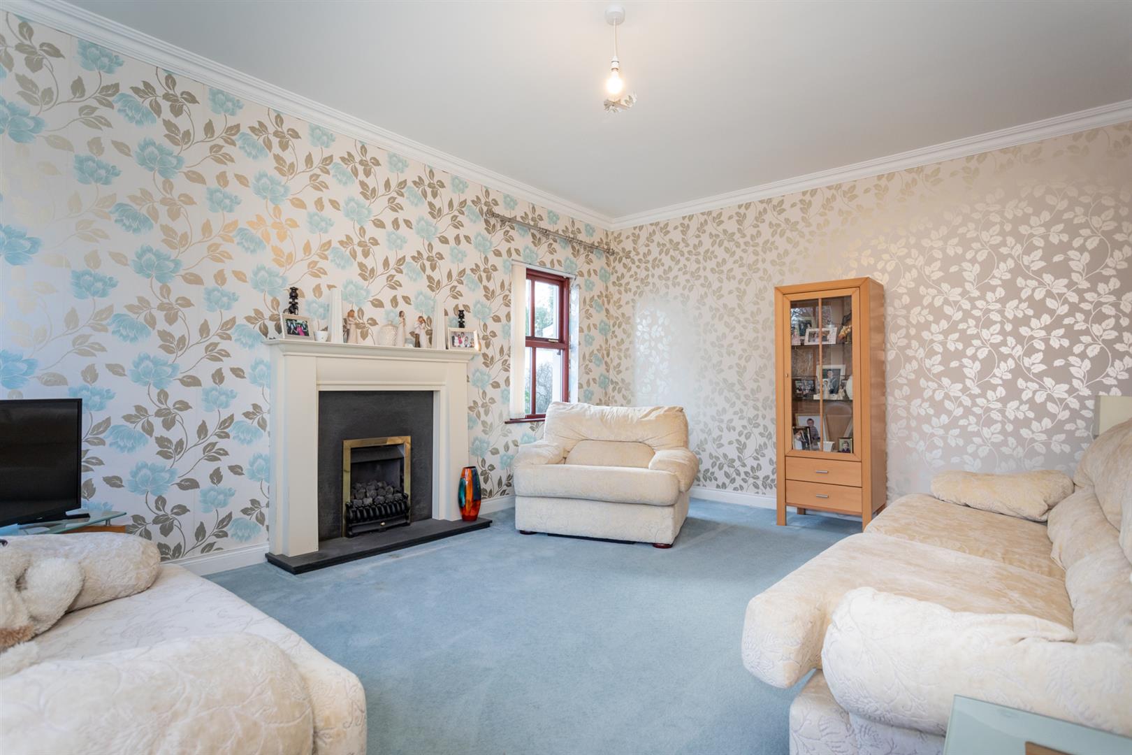 Open fire with inset gas fire, sandstone effect surround and slate hearth. Corniced ceiling. Dual aspect windows. Two double radiators.