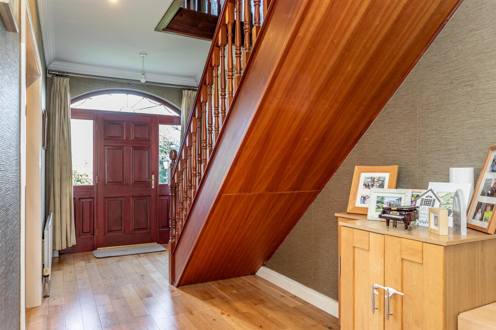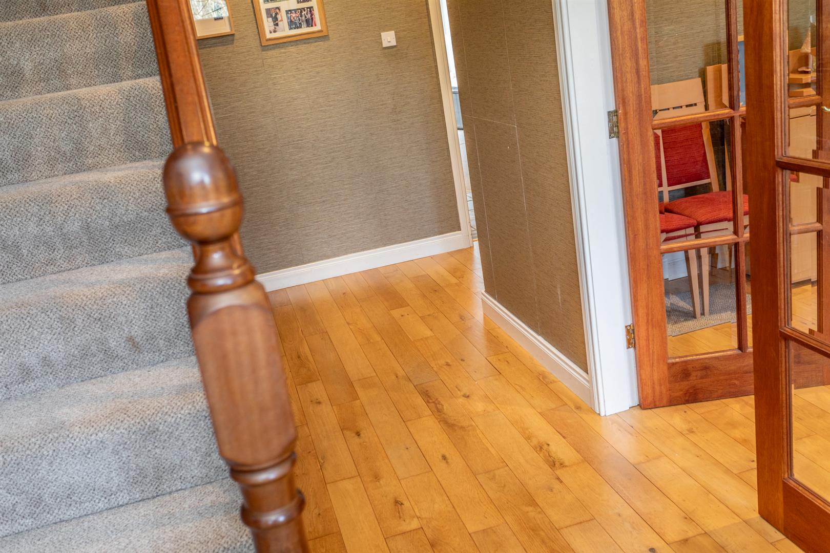 Spacious entrance hall with solid wood floor / Staircase to first floor / Ground floor W/C